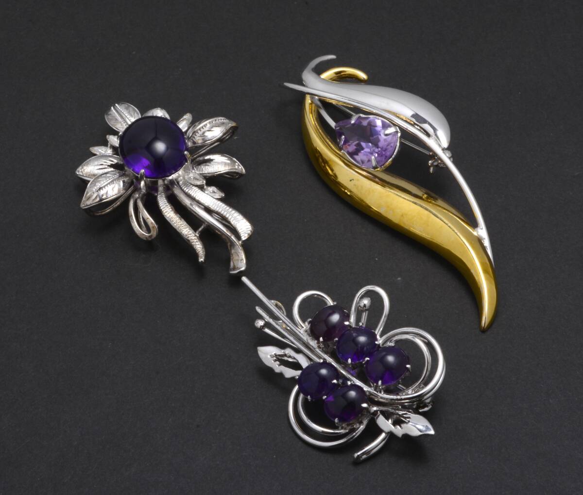20世紀中期頃と思われる、アメジストの美しいブローチまとめて出品です。