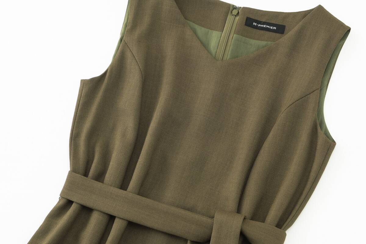 落ち着きのあるオリーブカラーが洗練された印象を与えるワンピース。