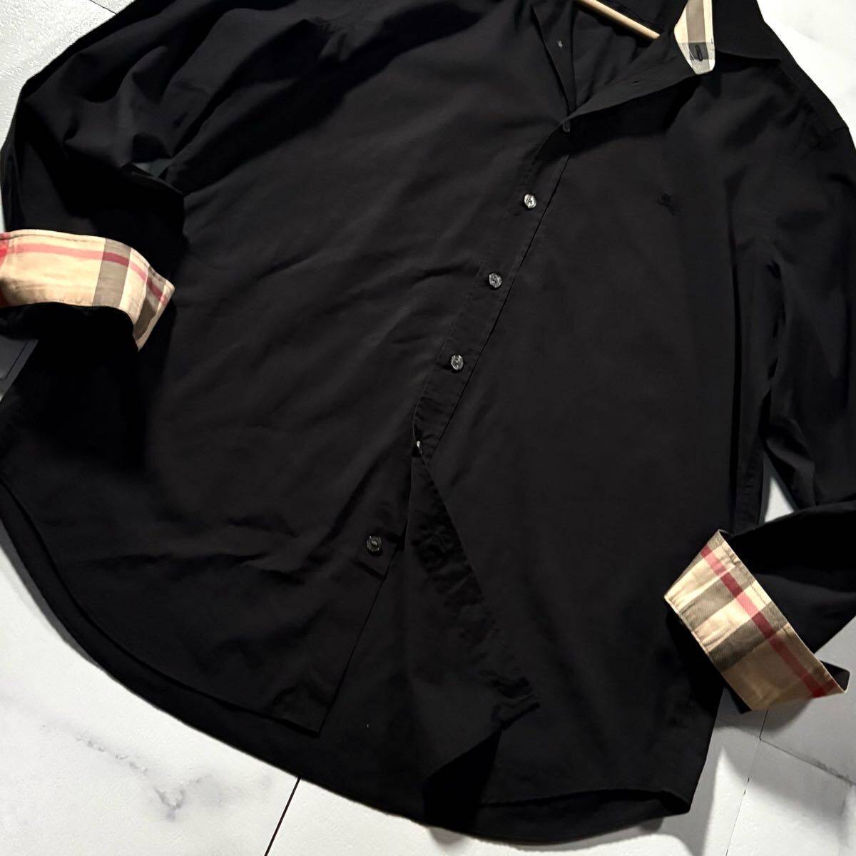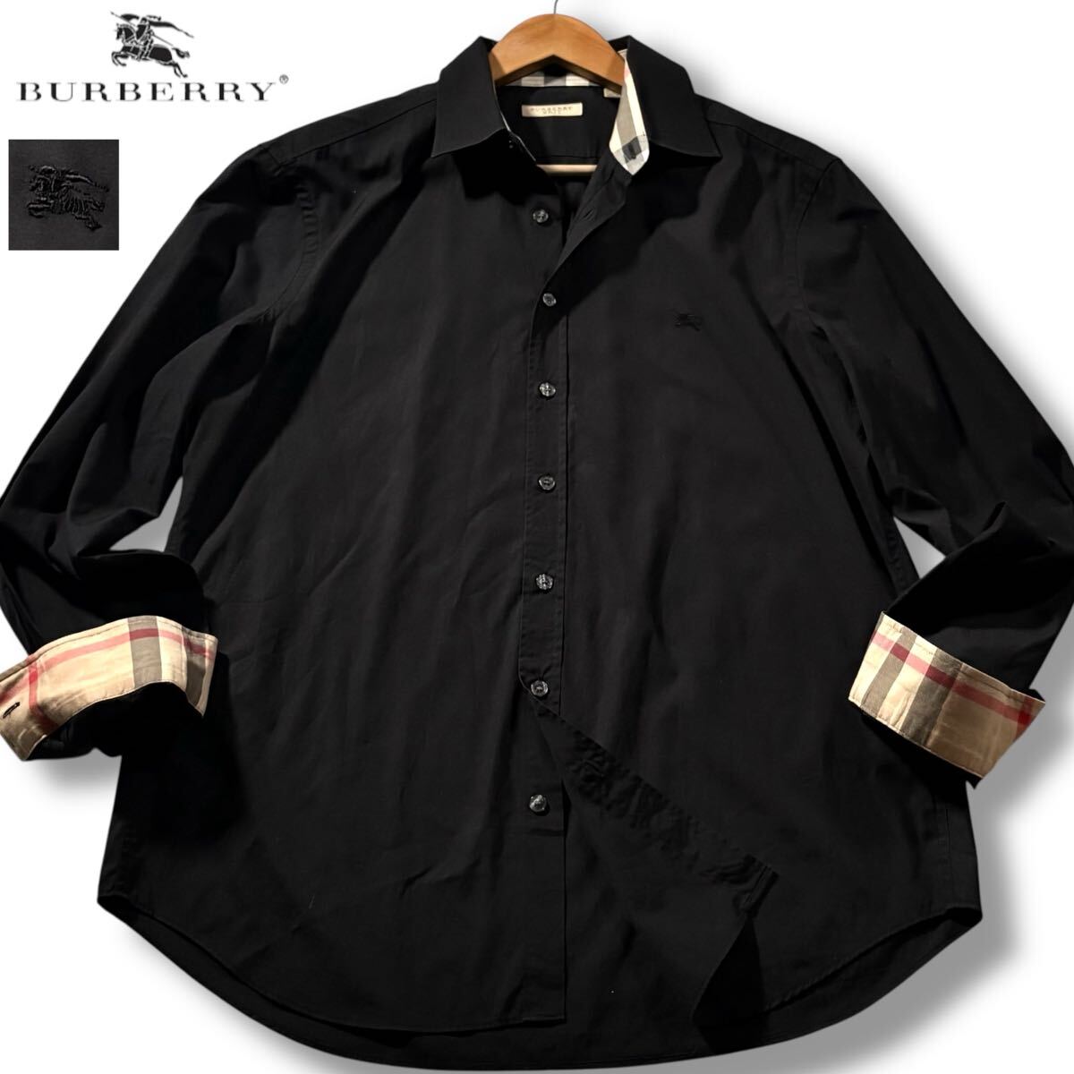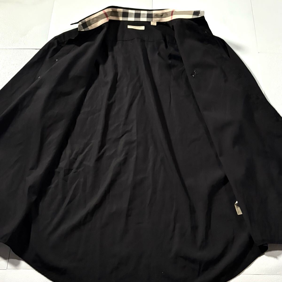 極美品/XLサイズ位●バーバリー ブリット 長袖シャツ 羽織り ドレスシャツ BURBERRY BRIT ストレッチ 胸ホースロゴ 裏地ノバチェック 黒