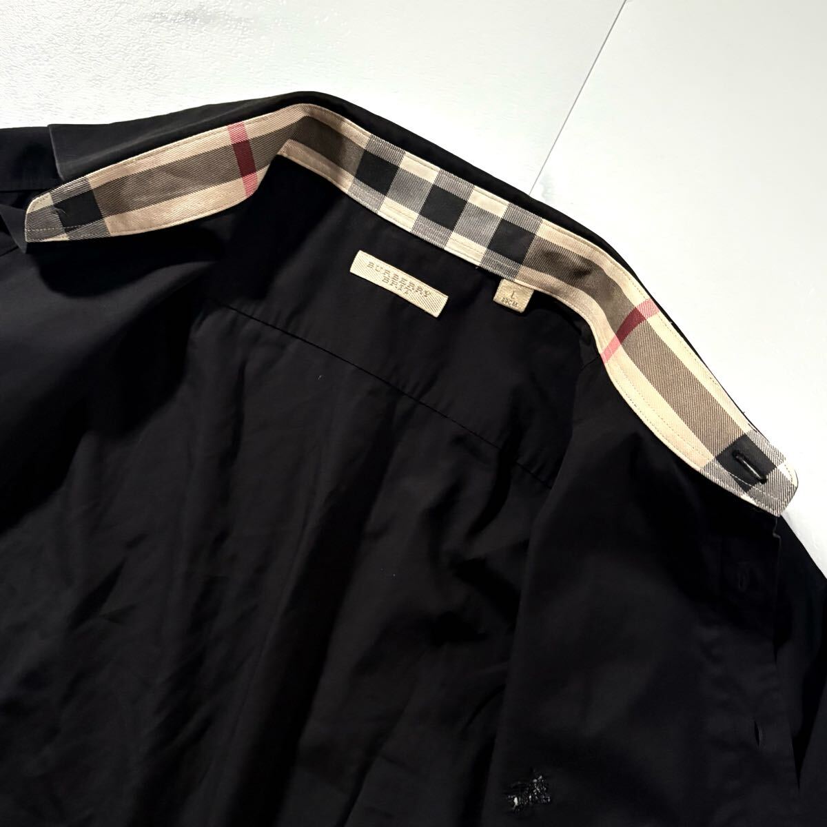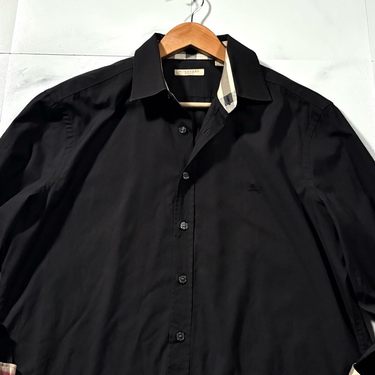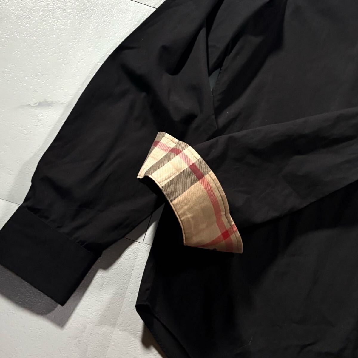 極美品/XLサイズ位●バーバリー ブリット 長袖シャツ 羽織り ドレスシャツ BURBERRY BRIT ストレッチ 胸ホースロゴ 裏地ノバチェック 黒