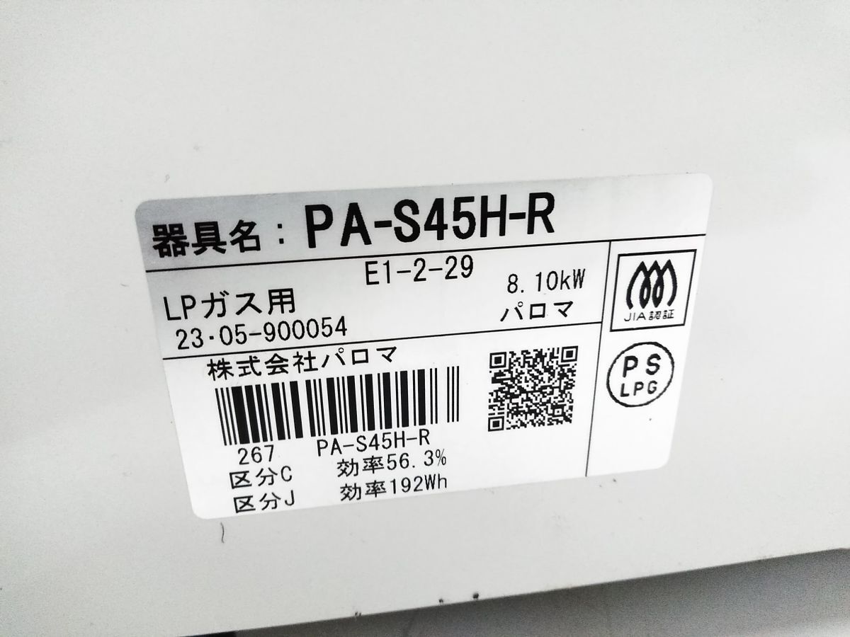 Product name: □Paloma パロマ ガスコンロ ガステーブル LPガス用 PA-S45H-R 取説 ホース付き 2023年製 0721-64 ※□