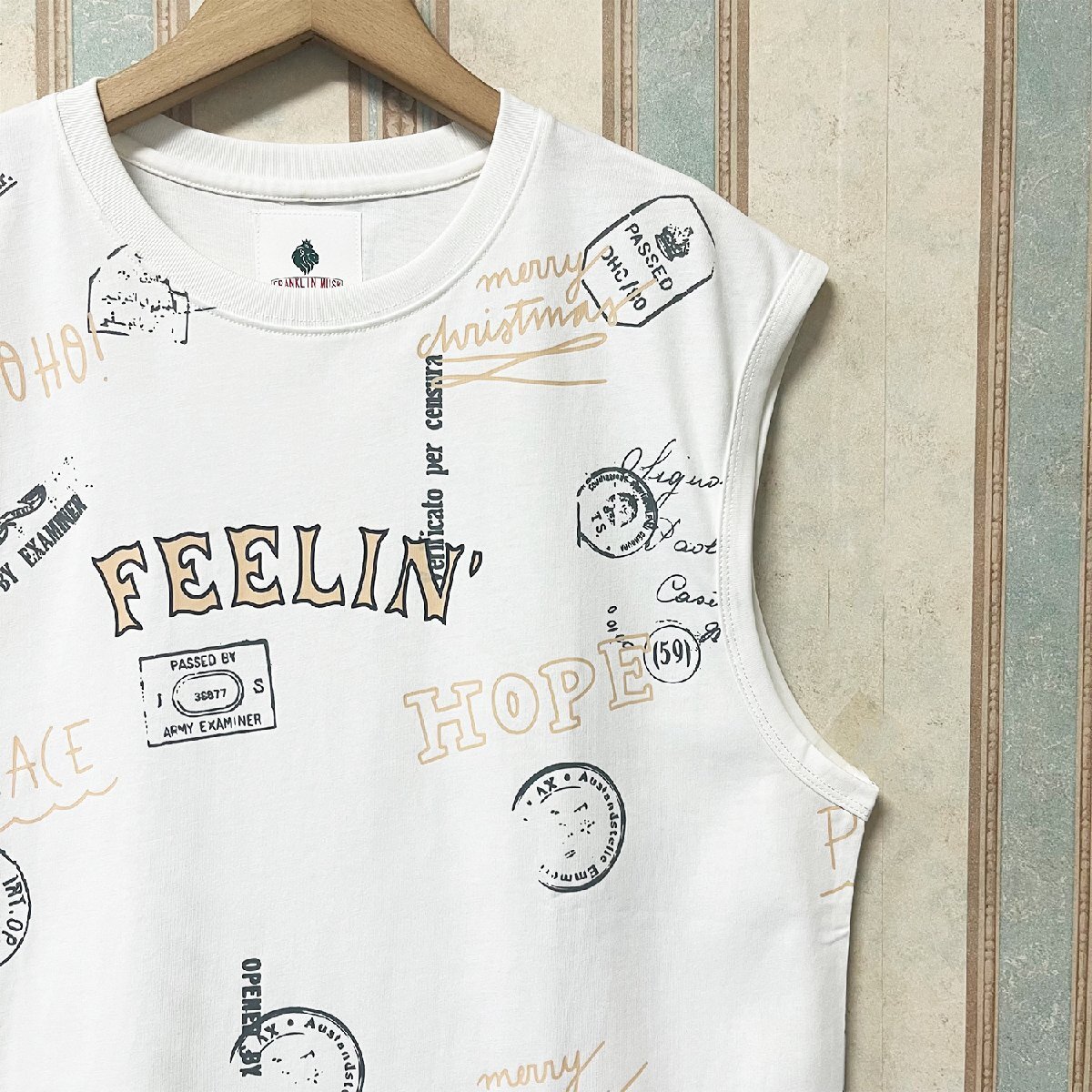 絶賛・タンクトップ 定価2万 FRANKLIN MUSK・アメリカ・ニューヨーク発 綿100% 柔らか 落書き ストリート スポーツ ゆったり 夏服 サイズ4