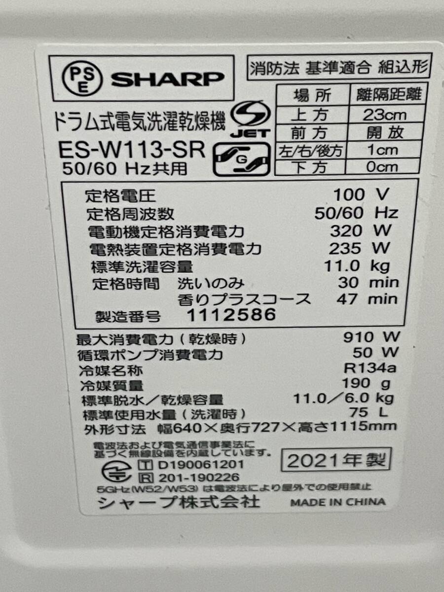 Product name: SHARP/シャープ/ドラム式電気洗濯乾燥機/洗濯11.0kg/乾燥6.0kg/右開き/プラズマクラスター/2021年製/ES-W113-SR/0720e