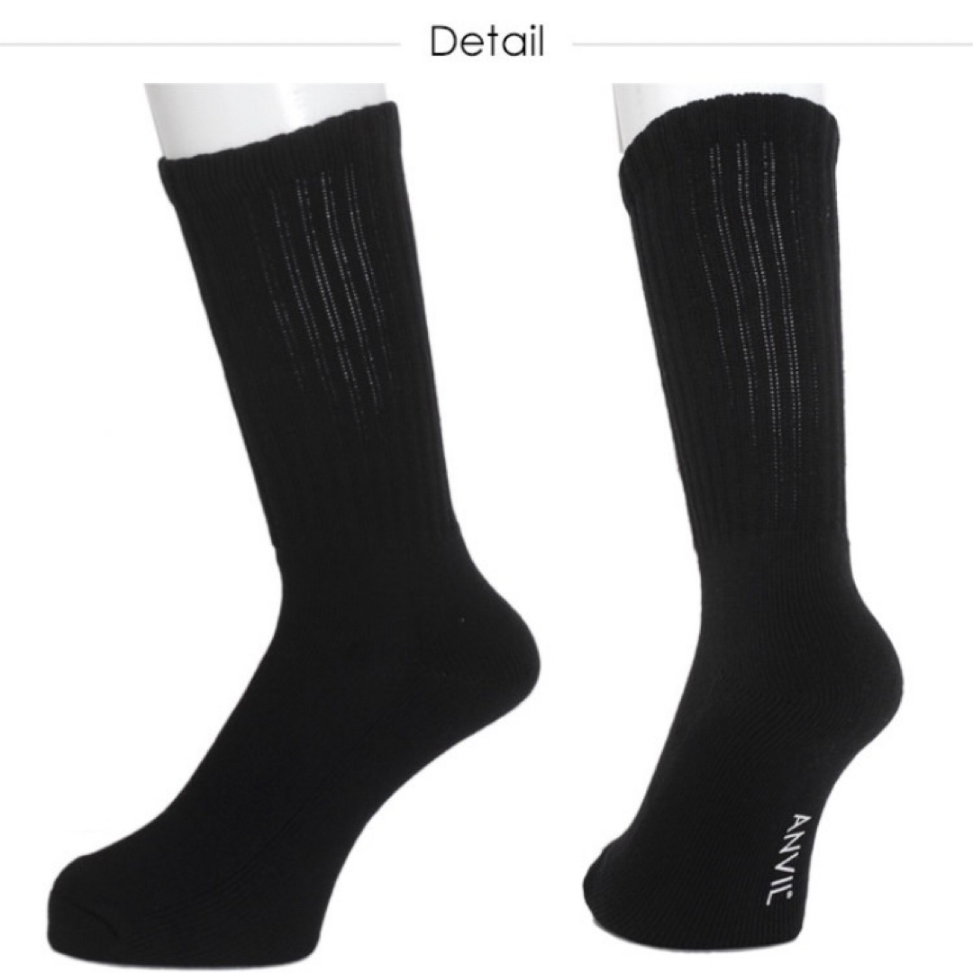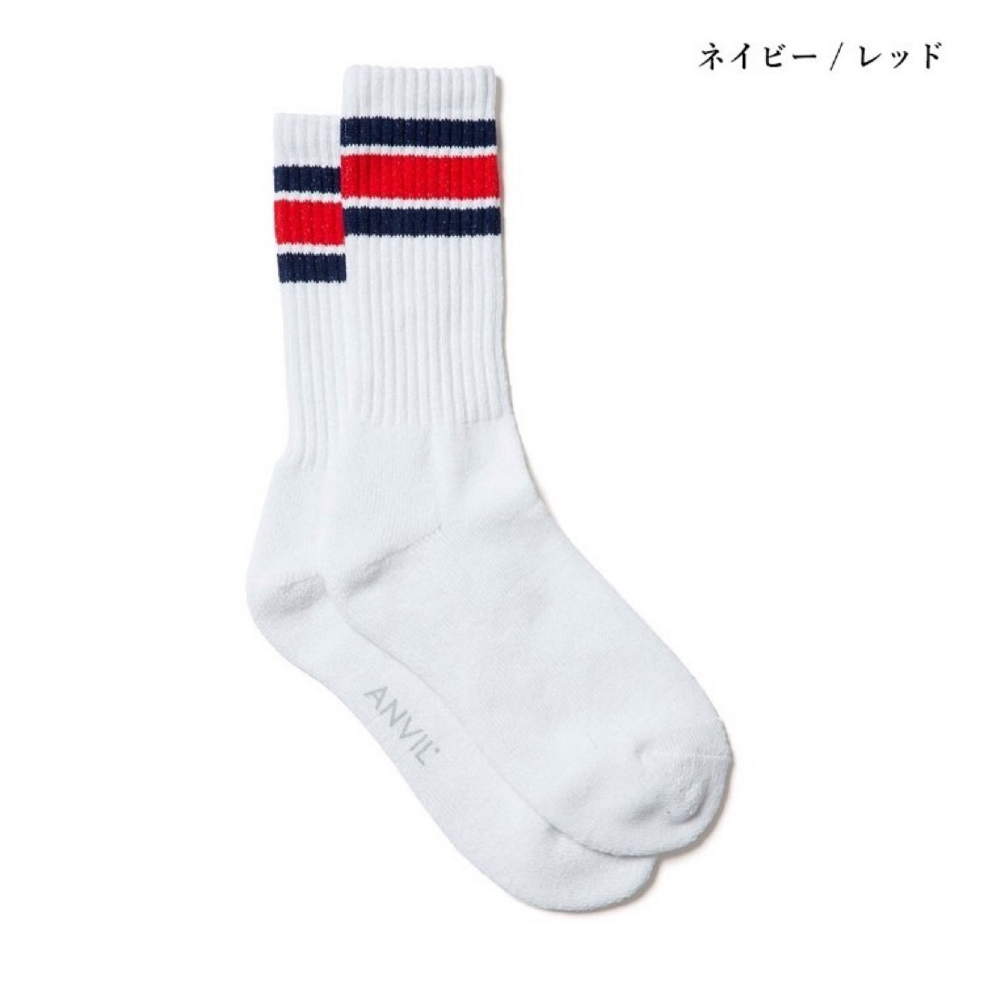 【アンビル】新品未使用 USコットン ライン クルーソックス ネイビー×レッド 1足