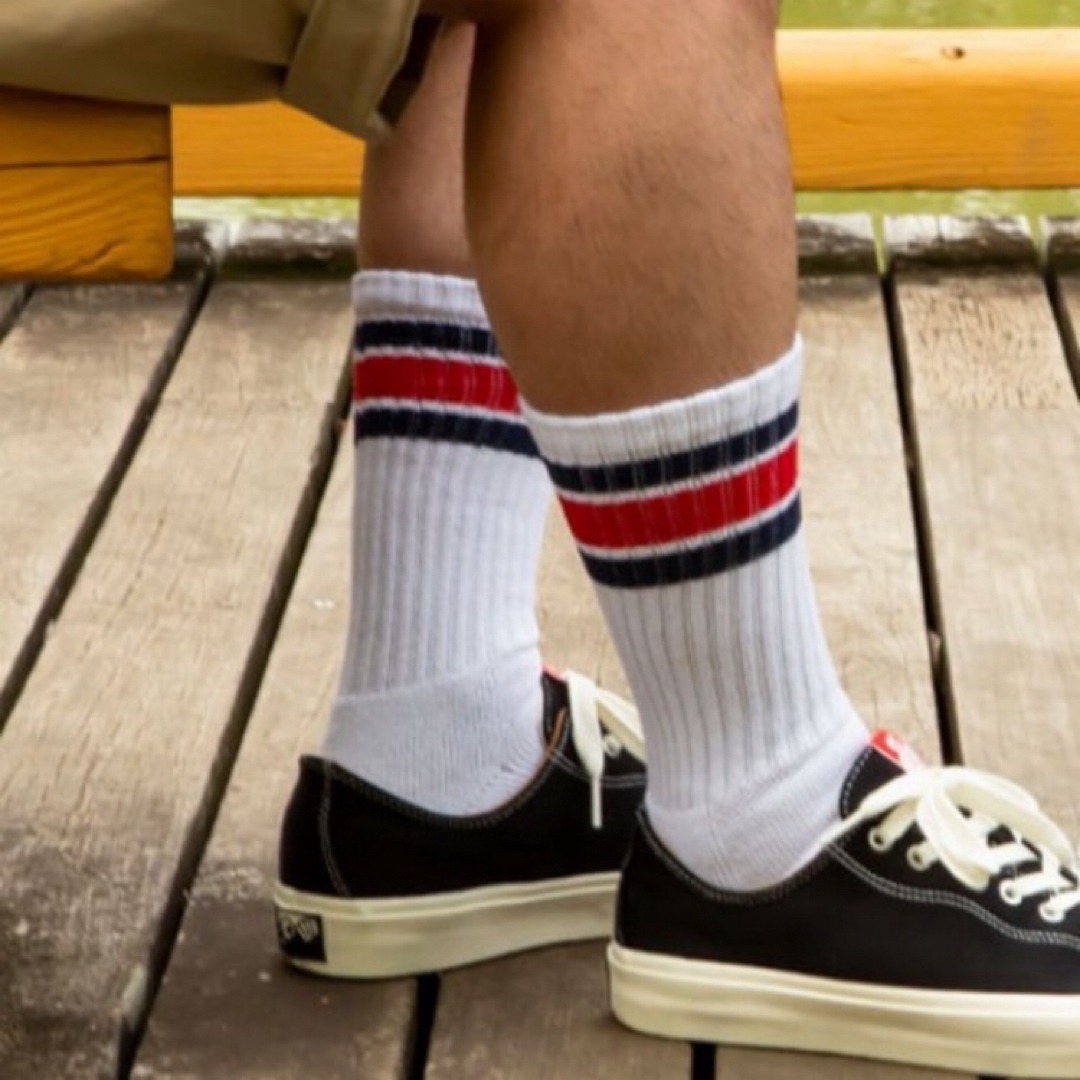 Product name: 【アンビル】新品未使用 USコットン ライン クルーソックス ネイビー×レッド 1足