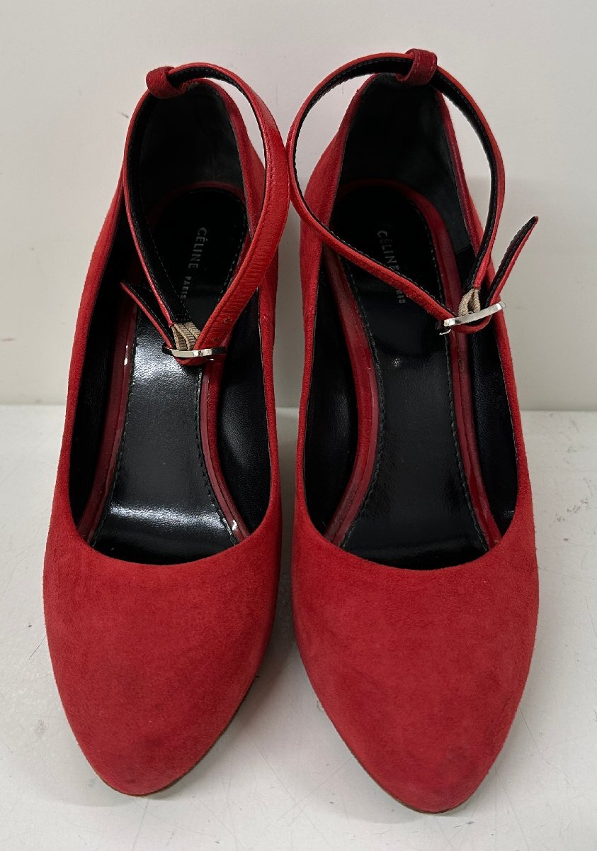 【中古品】CELINE セリーヌ pump wedge 90 パンプス ウエッジソール レッド サイズ 36 ※23cm相当 布袋 箱付き