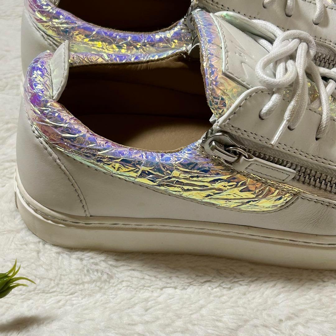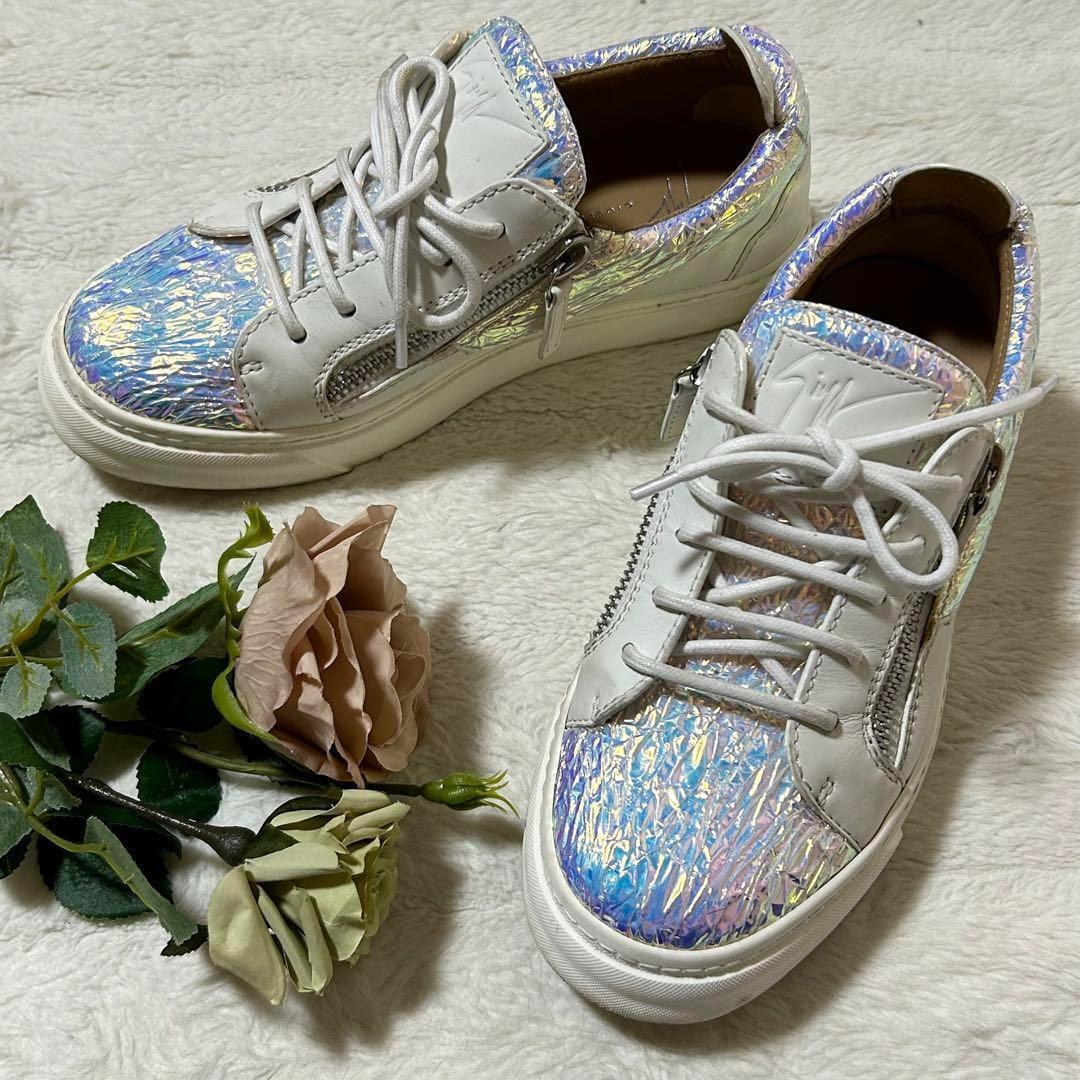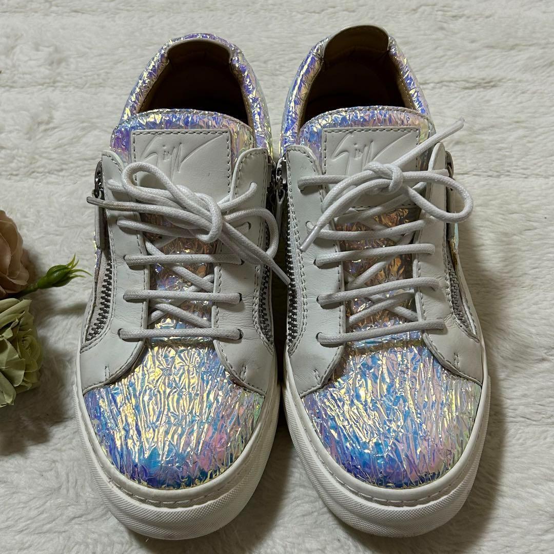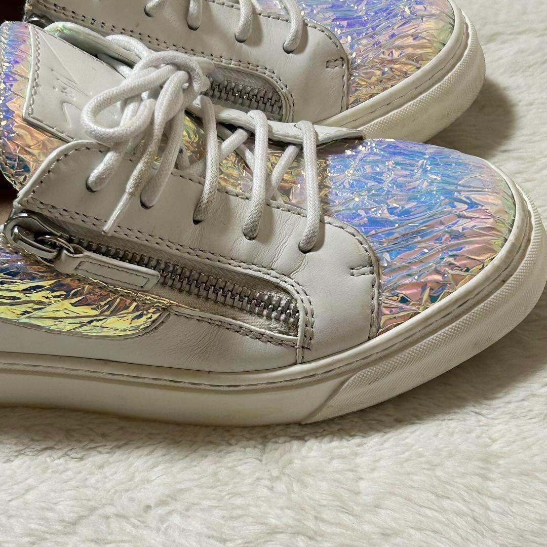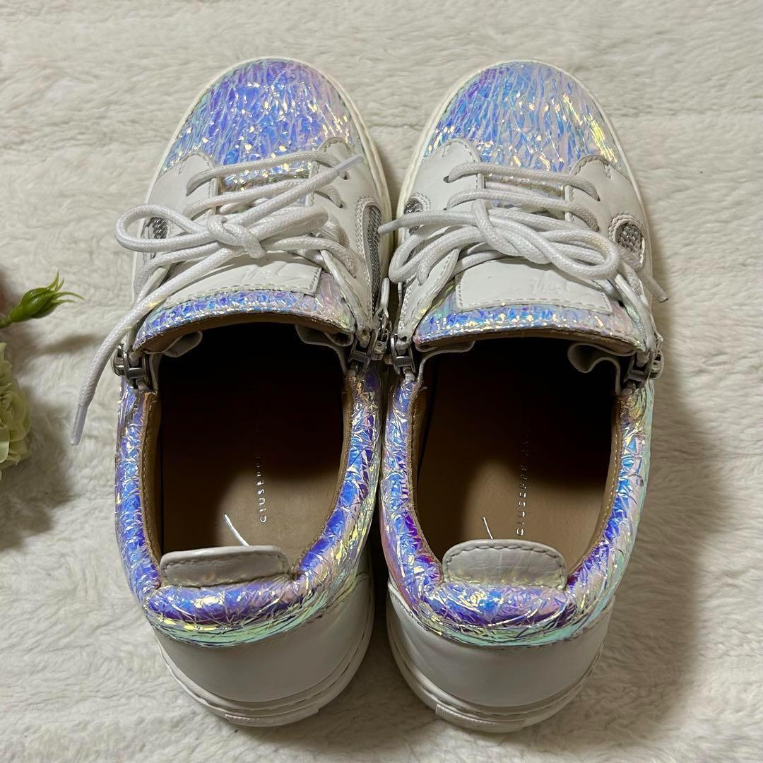 特徴:GIUSEPPE ZANOTTI Frankie ホワイト 白 レディース イタリア表記37号 日本サイズ約24.0㎝相当 レインボー テカテカ