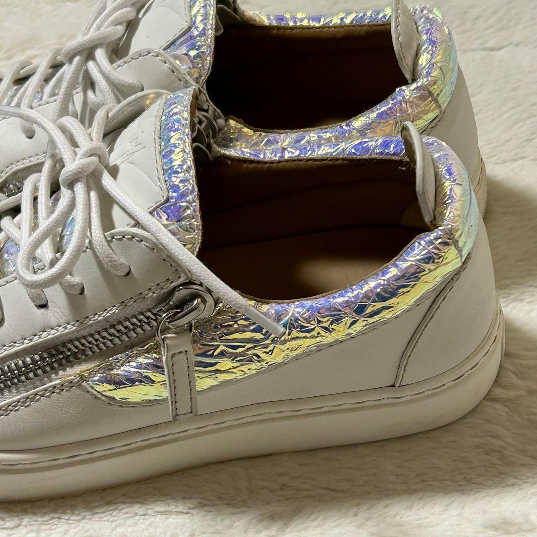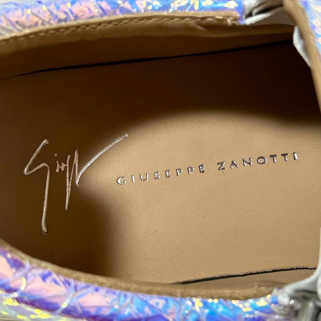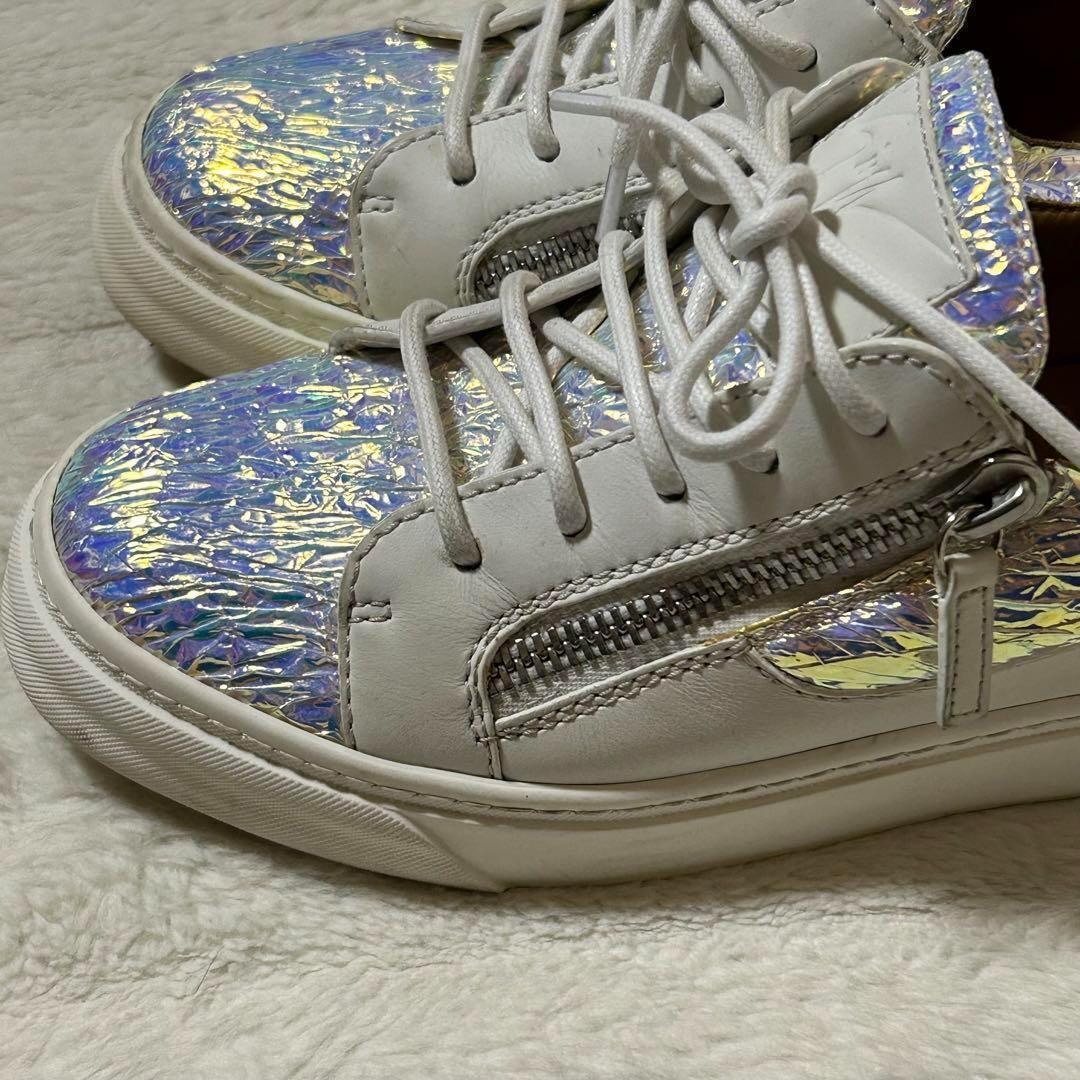 イタリア発のブランド、ジュゼッペザノッティ(GIUSEPPE ZANOTTI)のフランキー(Frankie)という型のスニーカーで、日本では発売されていない希少な物になります。当たる光の色や反射具合によってスニーカーが虹色に輝き、様々な表情を見せてくれる至高の一品です。即完売し、また日本未入荷のため、とても価値の高いものになります。