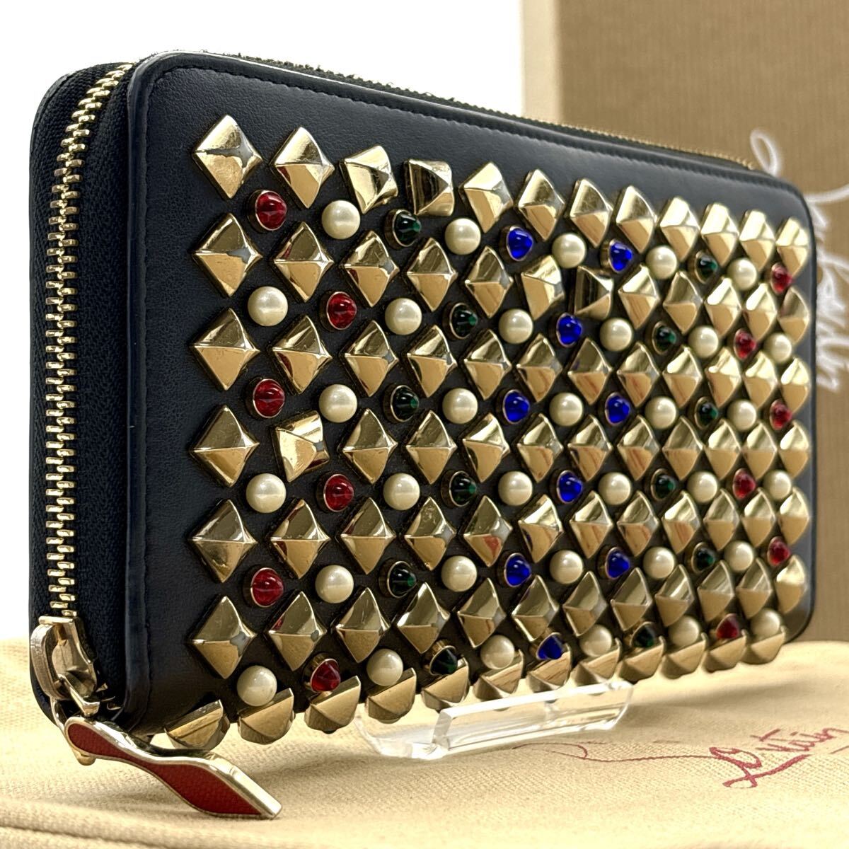 入手困難品◆Christian Louboutin クリスチャンルブタン 長財布 スタッズ パネトーネ スパイク マルチカラー ブラック メンズ レディース