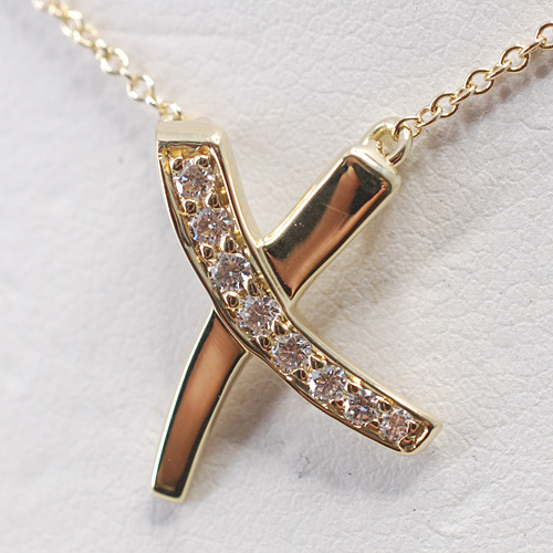 ティファニー 750(YG) X キス ダイヤ ペンダント ネックレス/パロマ・ピカソ 新品仕上げ済み(16460)