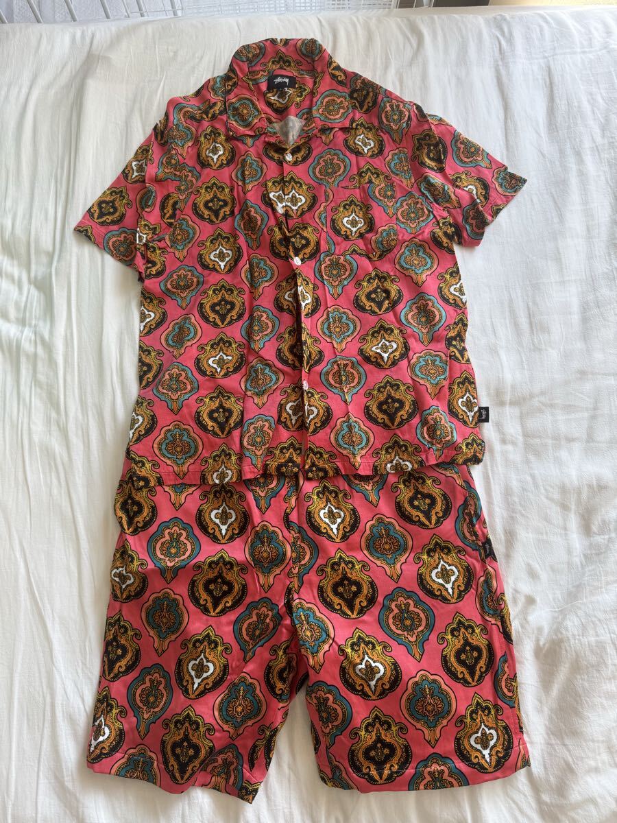【格安】STUSSY ステューシー アロハシャツ パンツ セットアップ 総柄 上下セット レーヨン