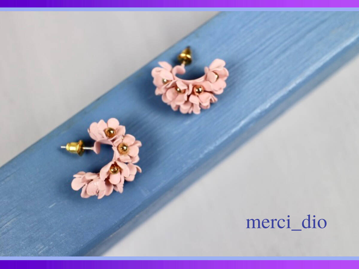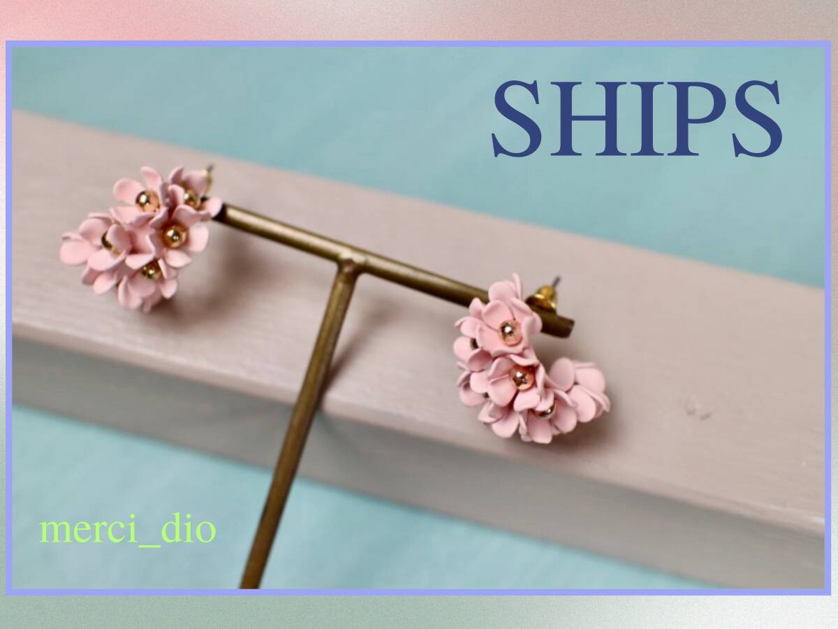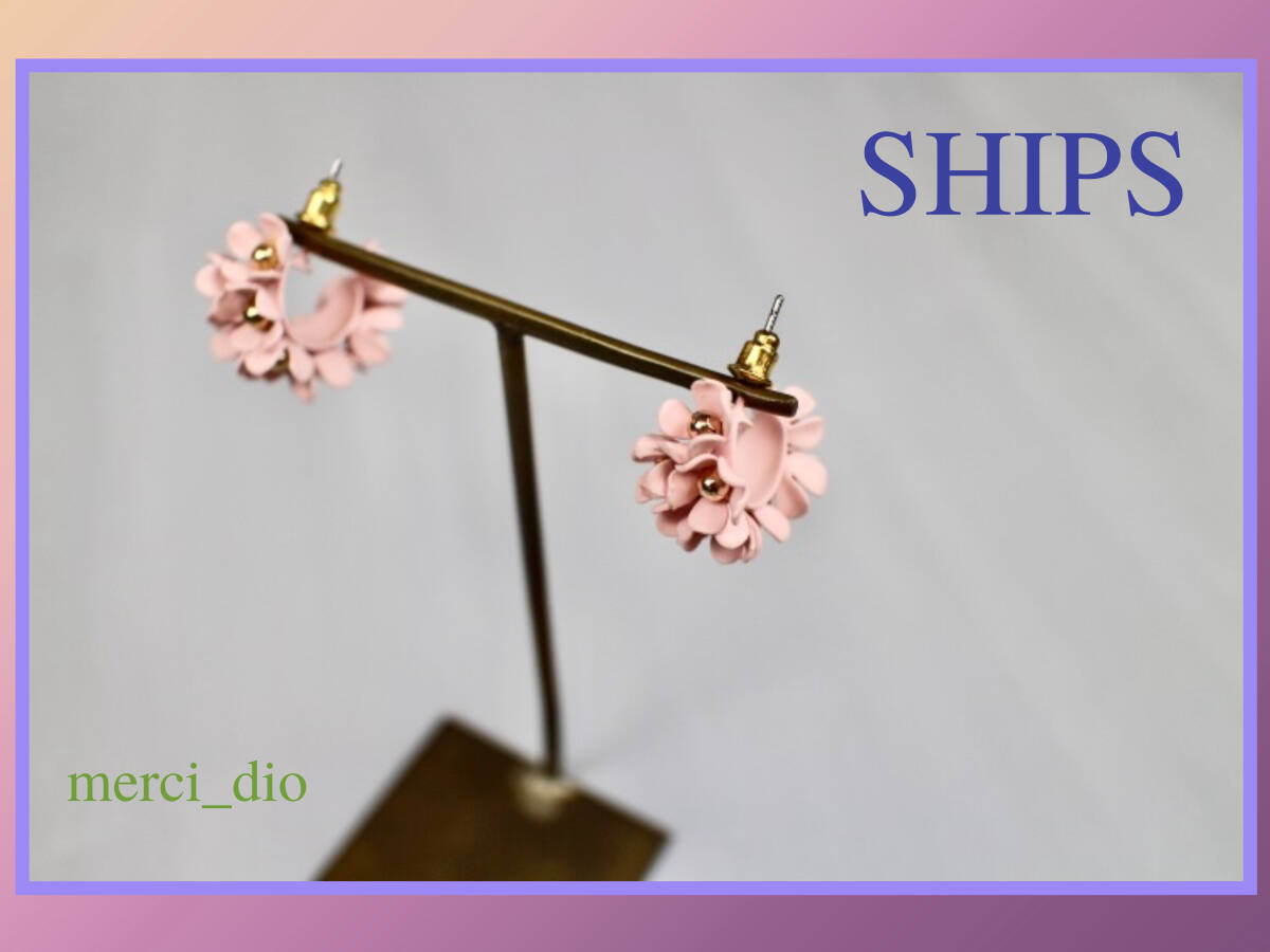 シップス SHIPS ラッフル フラワー Cカーブ スタッドピアス フープピアス パステルピンク ゴールド フリル 未使用 新品 トゥモローランド