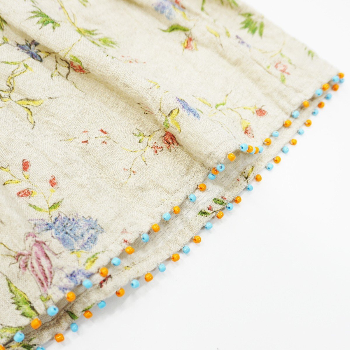フラワープリントとビーズがポイントのキュロット。