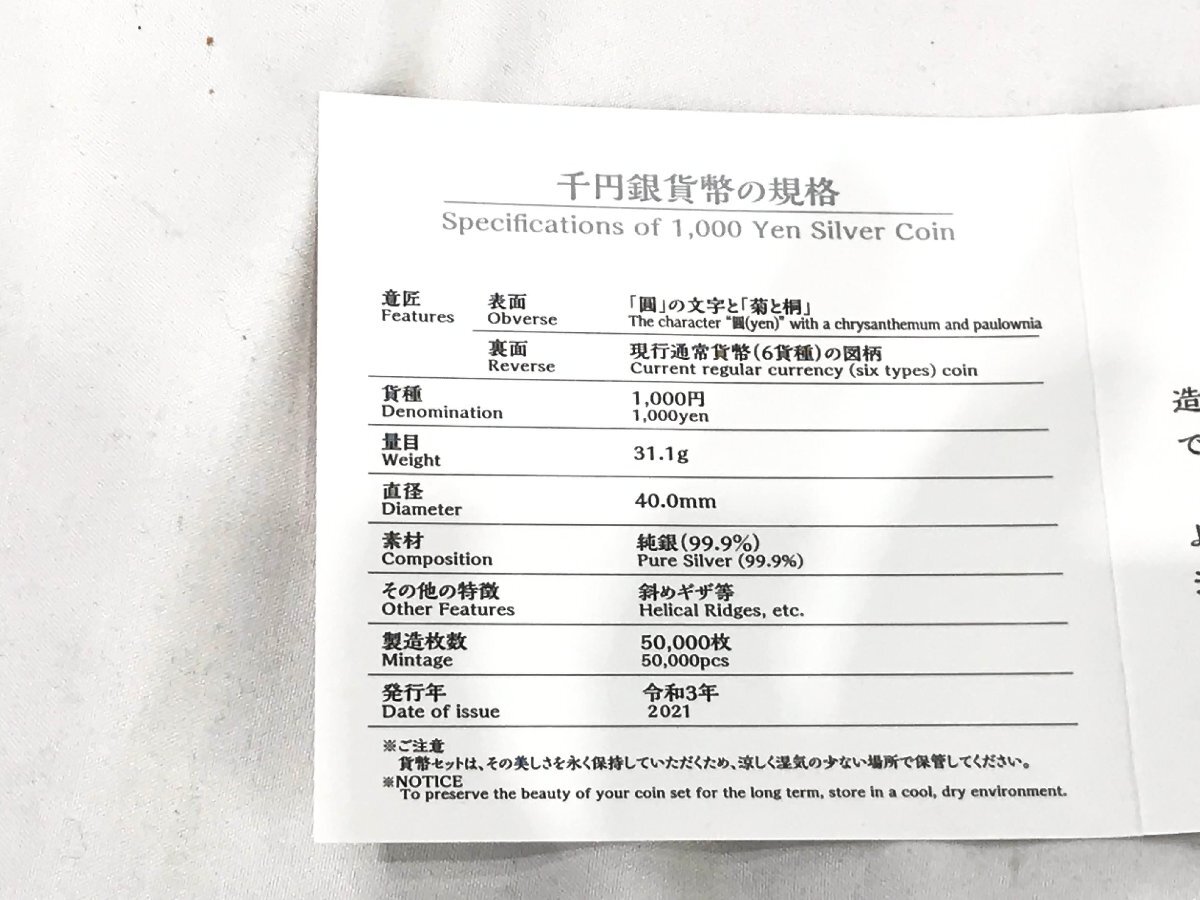 Product name: 【1円スタート】近代通貨制度150周年記念 千円銀貨幣プルーフ貨幣セット 31.1g 純銀 令和3年 1000円 造幣局 H1423