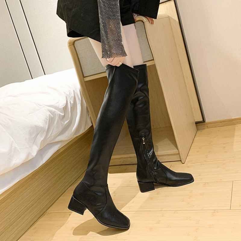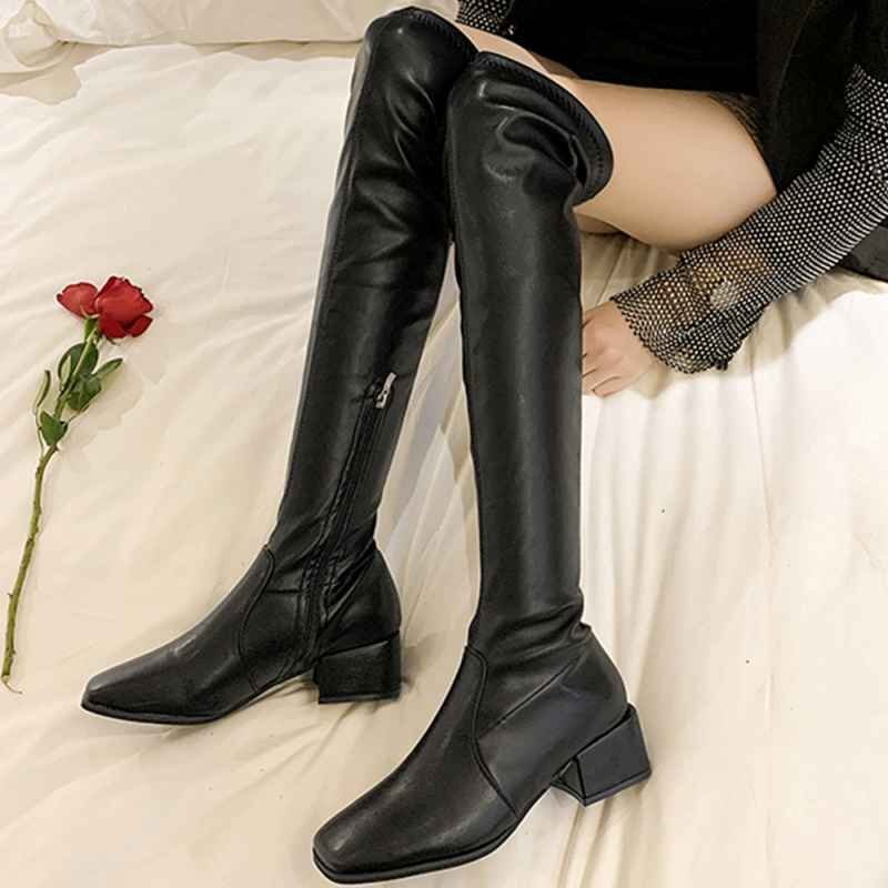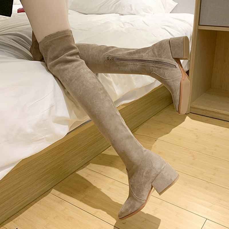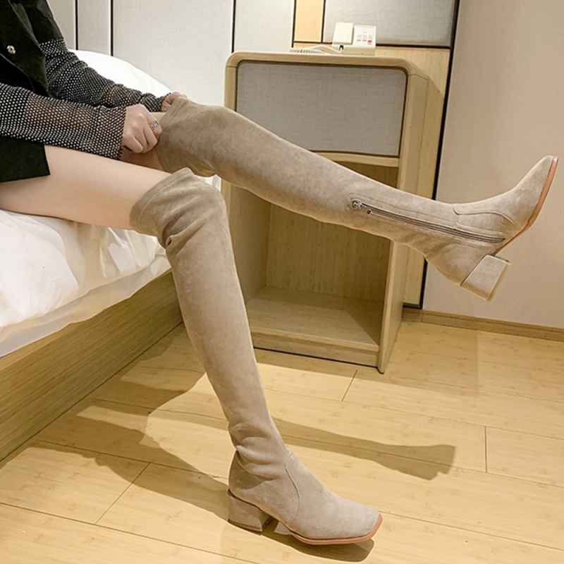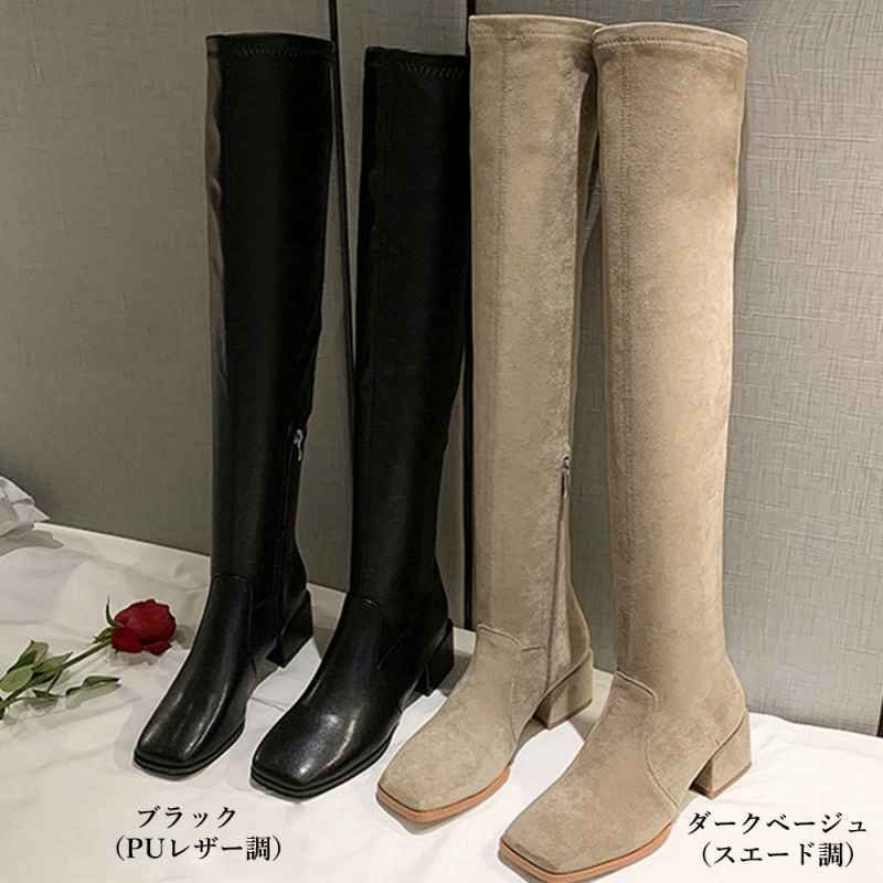 ニーハイブーツ スクエアトゥ 美脚ブーツ 25.0cm(6) ダークベージュ(スエード調)