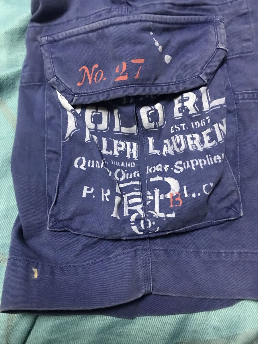 ポロ ラルフローレン POLO RALPHLAUREN ジーパンのような色 写真3の色が1番近いです、 ポケット使用によるスレ有ります、ウエスト約48㎝(平置き)、股下約25㎝、ワタリ約33㎝(平置き)、総丈約54㎝ すごくオシャレです、