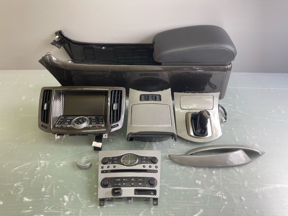 1000円売り切り!! スカイライン CKV36 平成19年 社外 ウエットカーボン 内装パネル ハンドル エアコンパネル コンソール カーボン 中古
