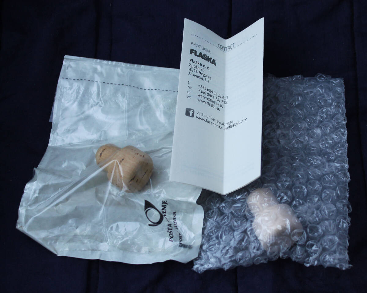 当時の記憶はありませんが、見てみるとボトルのうち1本のキャップをスペアのもの(コルクとは違う素材)に変えているようで、もちろんオリジナルと思われるコルクのキャップもそのまま残っています。