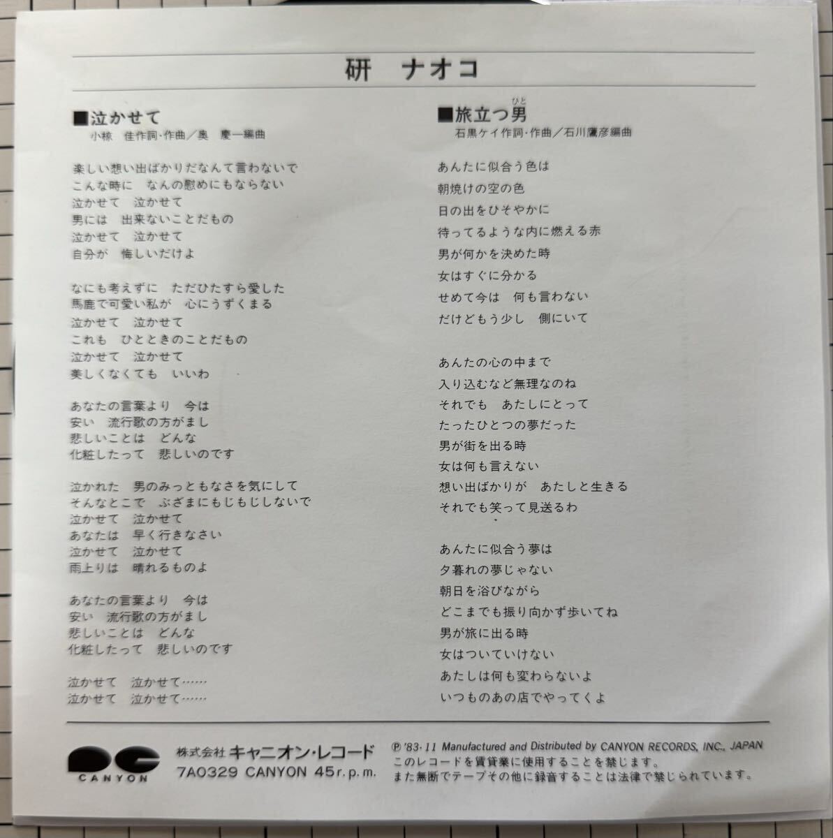 Product name: 即決◆研ナオコ/泣かせて/旅立つ男 (良品盤EP) 小椋佳