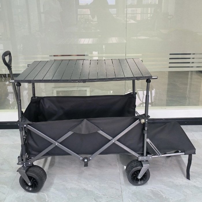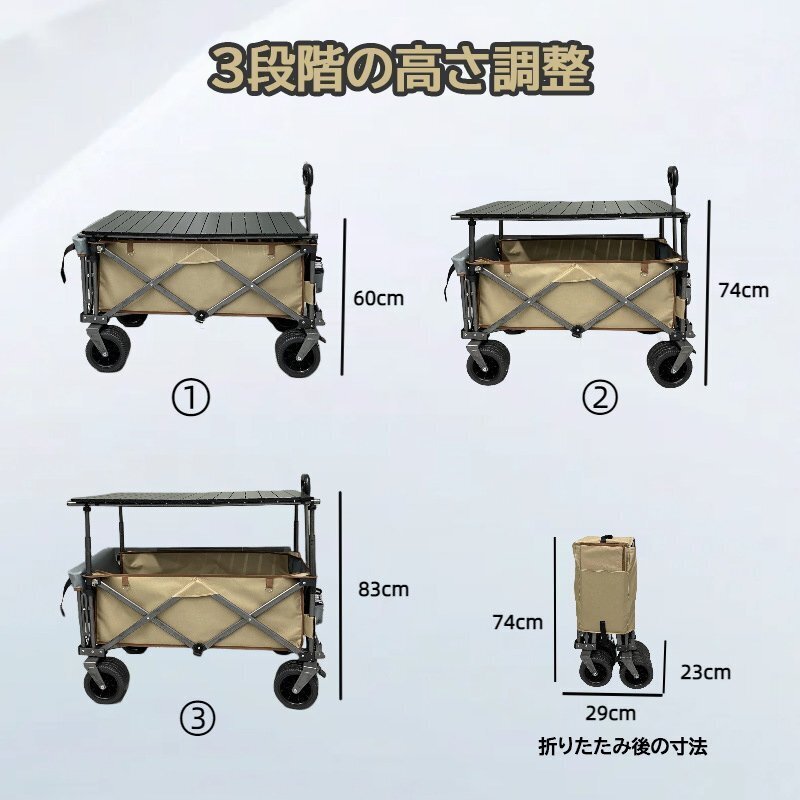 Product name: キャリーワゴン キャリーカート カバーテーブル付き ワイドタイヤ ブレーキ付き 高さを調整 荷重50kg 集合収納 (ブラック)