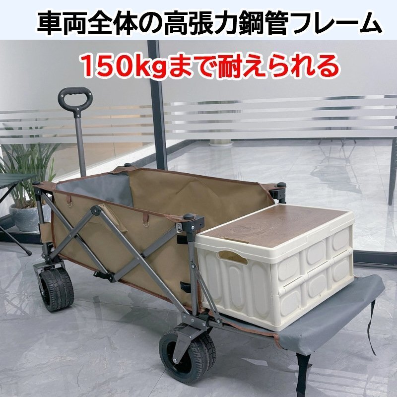 キャリーワゴン キャリーカート カバーテーブル付き ワイドタイヤ ブレーキ付き 高さを調整 荷重50kg 集合収納 (ブラック)