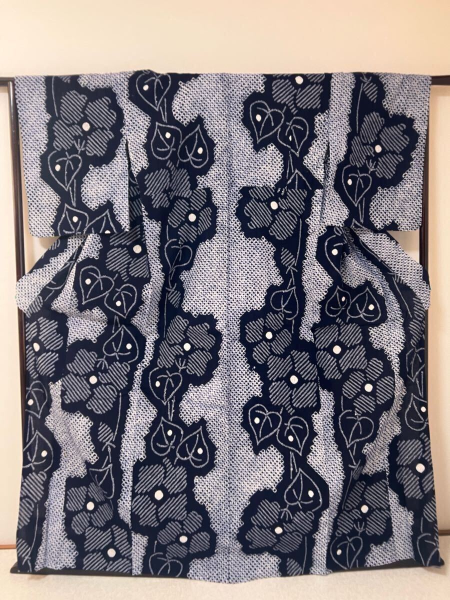 浴衣 着丈161cm 綿 単衣 ゆかた 紺色青色 夏 和装 きもの