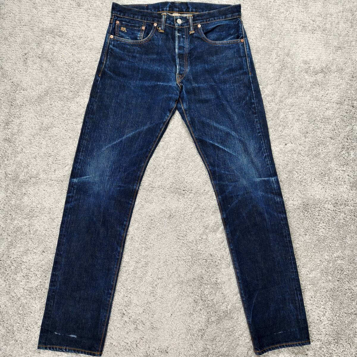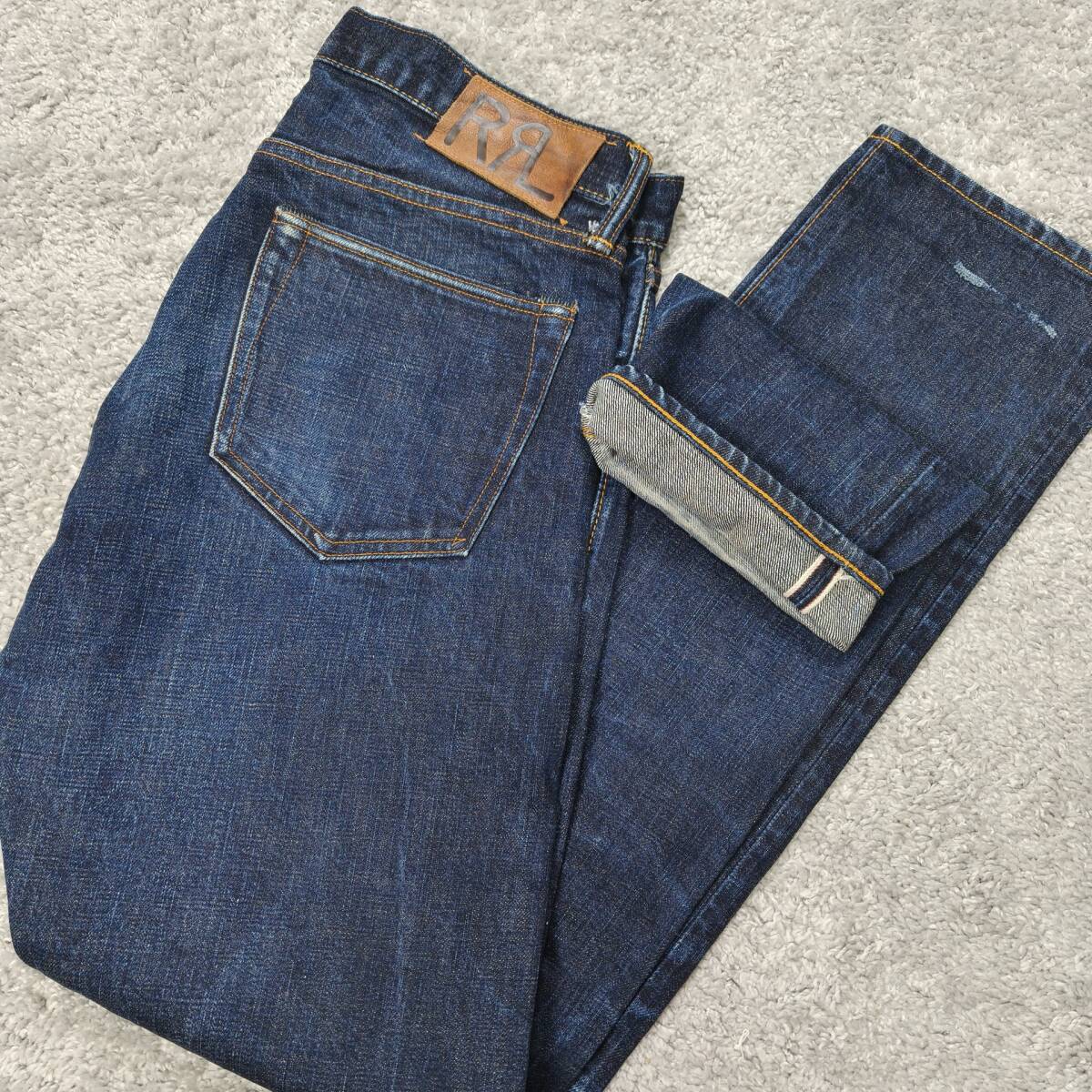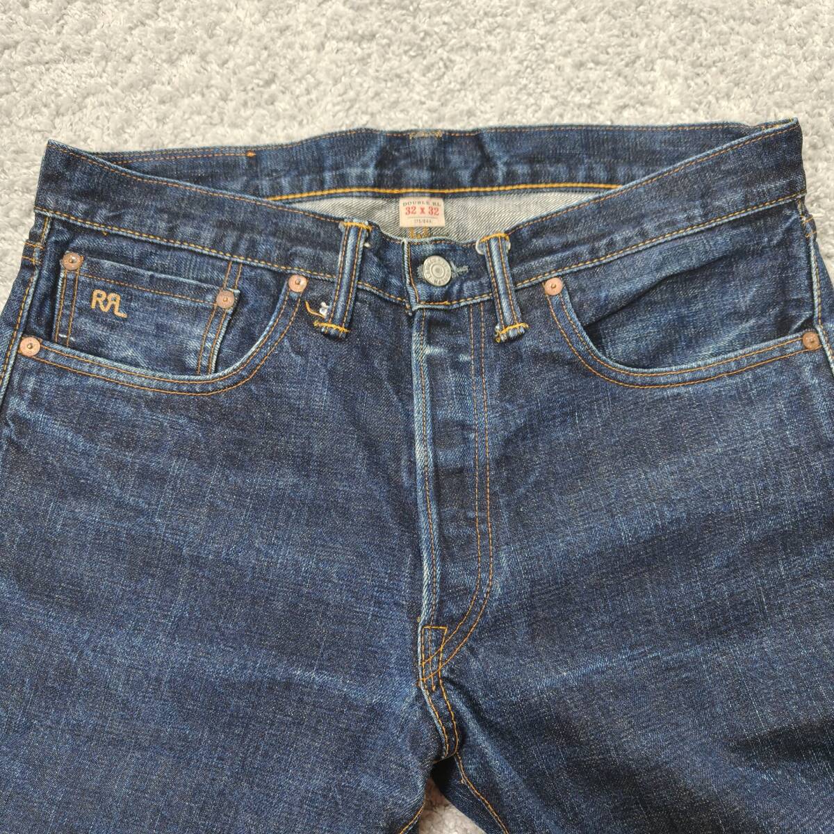 RRL 日本製セルビッジデニム 32×32 USA製 デニムパンツ ジーンズ オリジナルレングス SLIM FIT 赤耳 革パッチ 刺繍 ダブルアールエル