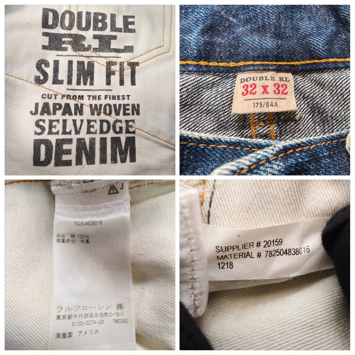 Product name: RRL 日本製セルビッジデニム 32×32 USA製 デニムパンツ ジーンズ オリジナルレングス SLIM FIT 赤耳 革パッチ 刺繍 ダブルアールエル