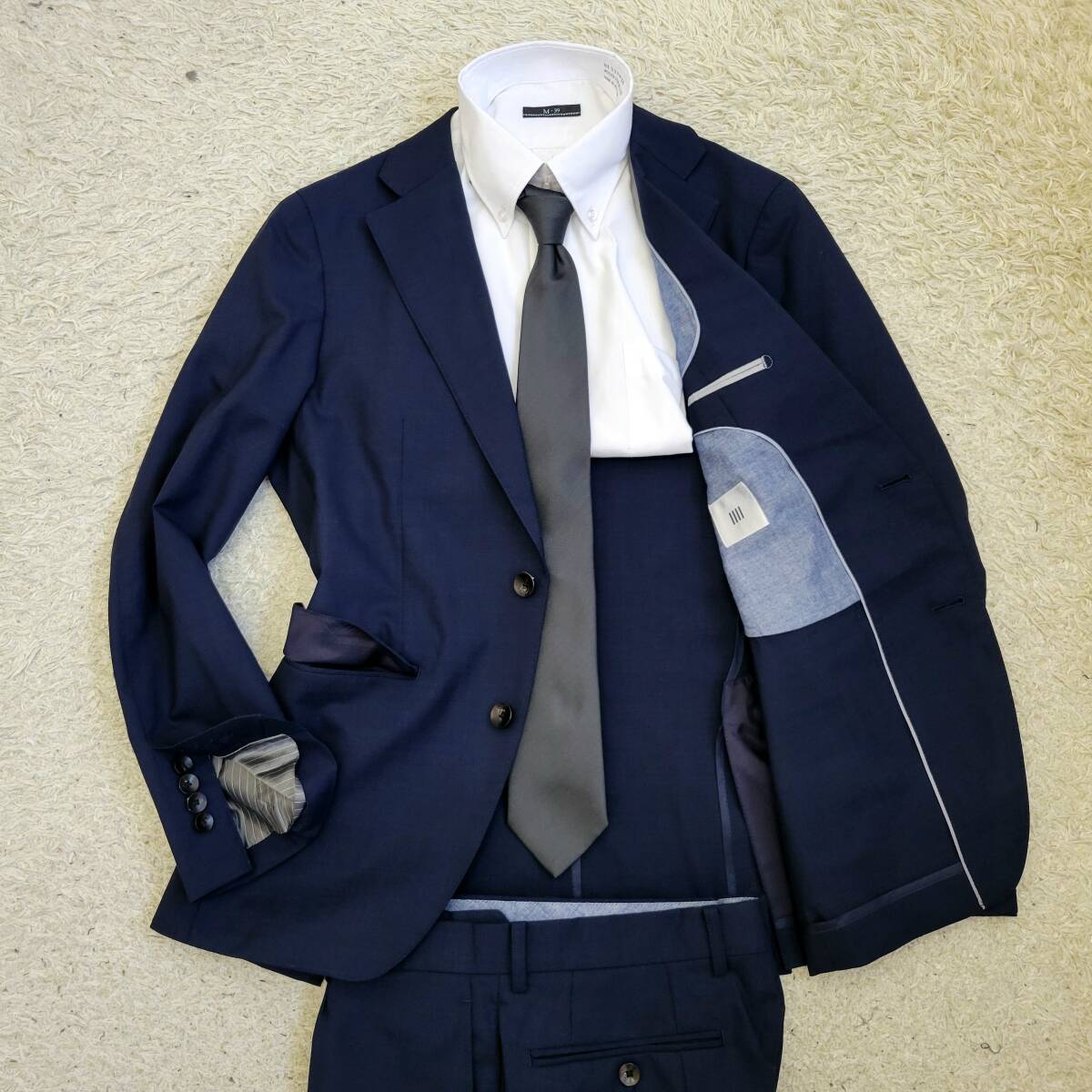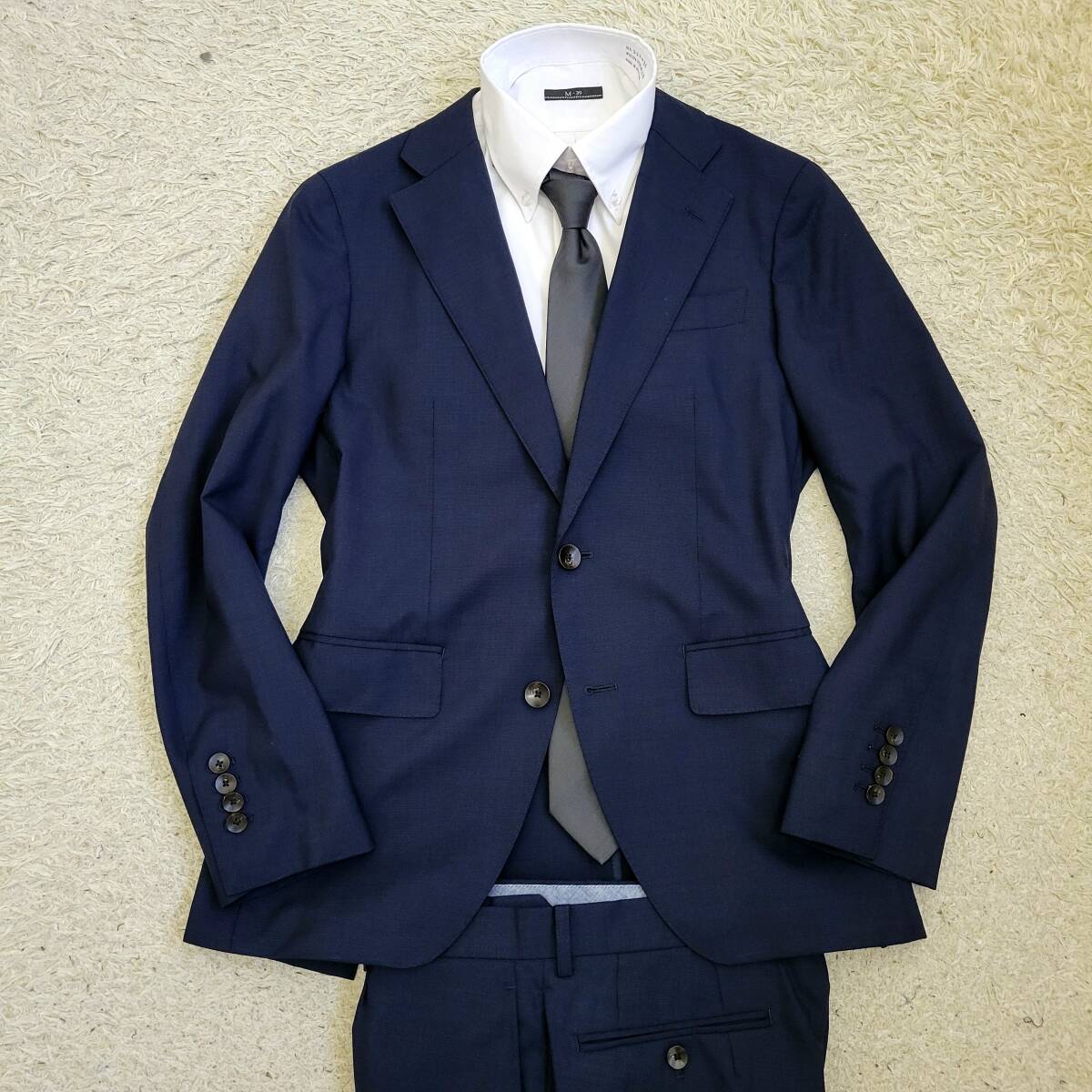 スーツセレクト SUIT SELECT スーツ セットアップ テーラードジャケット 薄手 ウール 微ストレッチ チェック調 ネイビー 裏デニム M位