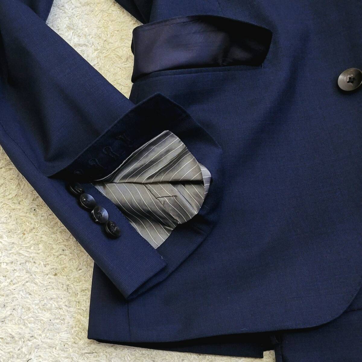 Product name: スーツセレクト SUIT SELECT スーツ セットアップ テーラードジャケット 薄手 ウール 微ストレッチ チェック調 ネイビー 裏デニム M位