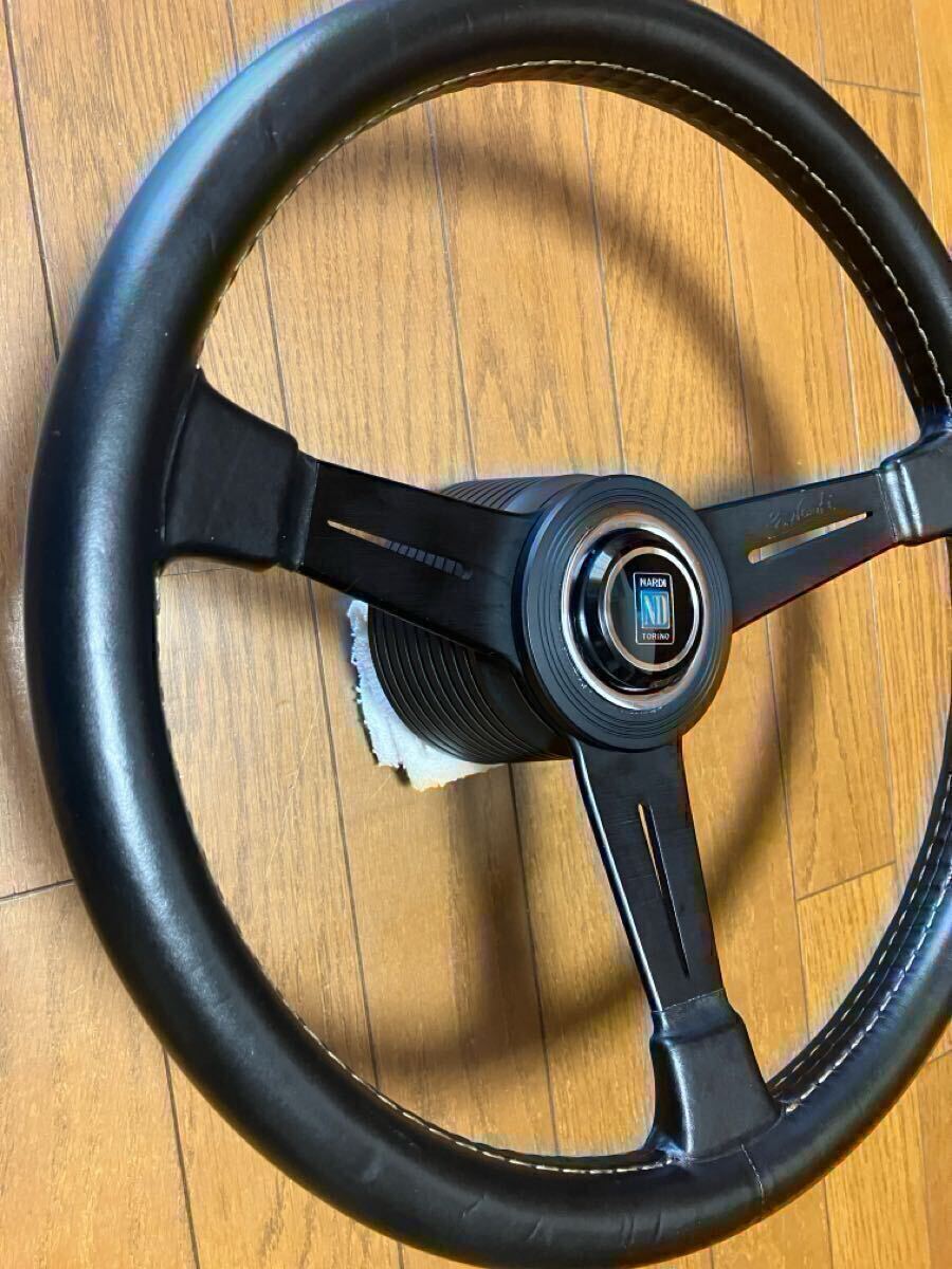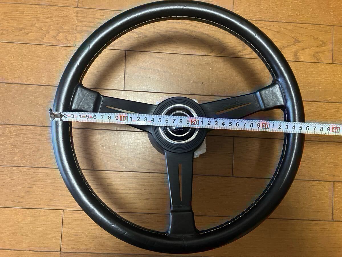 当時物のナルディクラシックのステアリング ブラックレザー&ブラックスポーク 直径 360mm made in Italy FET刻印あり リング ホーンボタン。