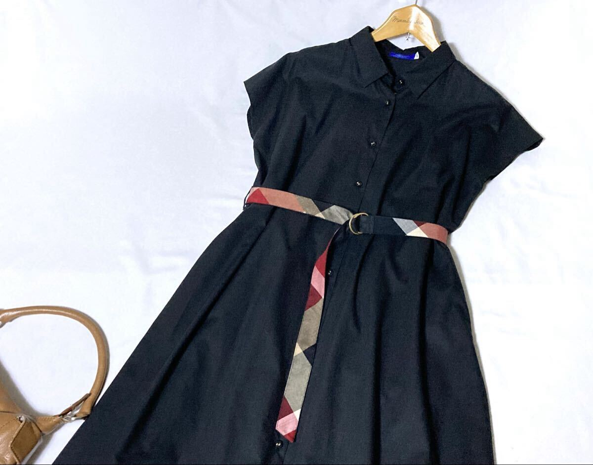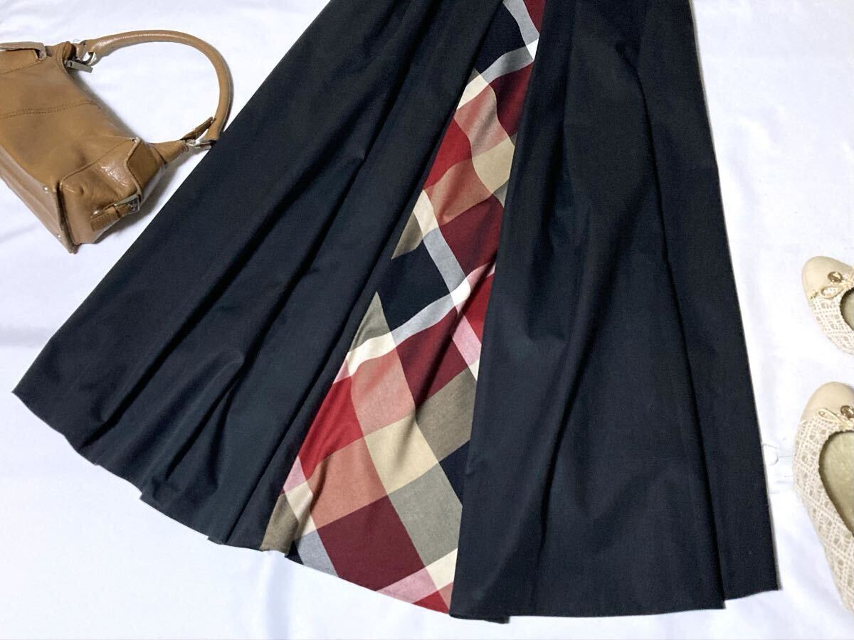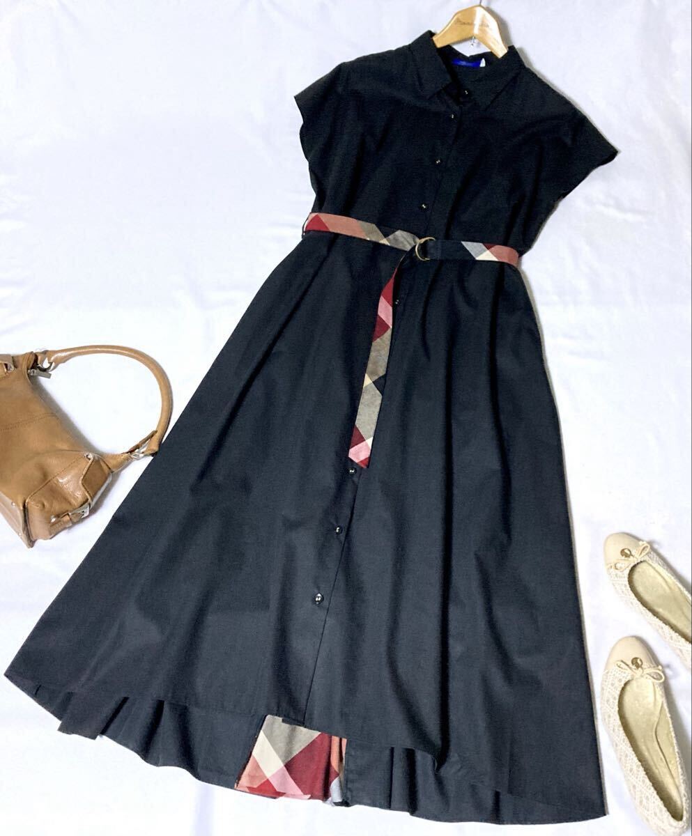 新品同様 ブルーレーベルクレストブリッジ 後ろチェックの切替えが可愛いマキシ丈ワンピース 38 送料230円♪