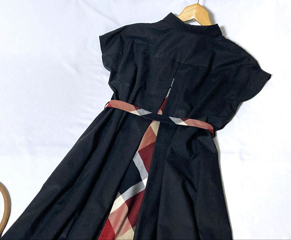 後ろチェックの切替えがクレストブリッジらしいワンピースです。人気のマキシ丈です。ベルトはチェックとブラックのリバーシブルでお使いいただけます。両サイドポケットが付いています。