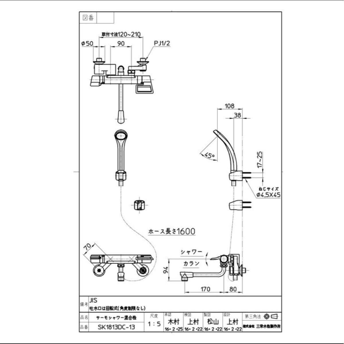 Product name: 三栄水栓 SK1813DC-13 サーモシャワー混合栓 シャワー付 一般地用 壁付 節水(SK1811DCの前モデル) SANEI