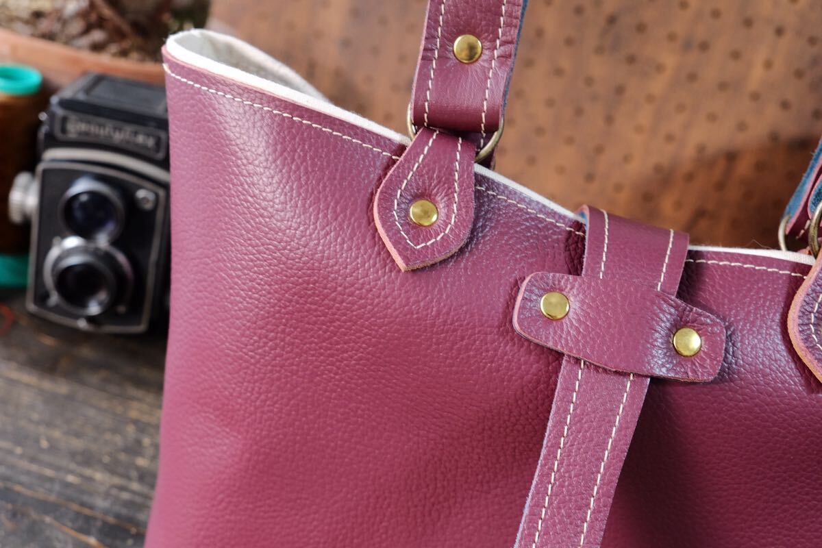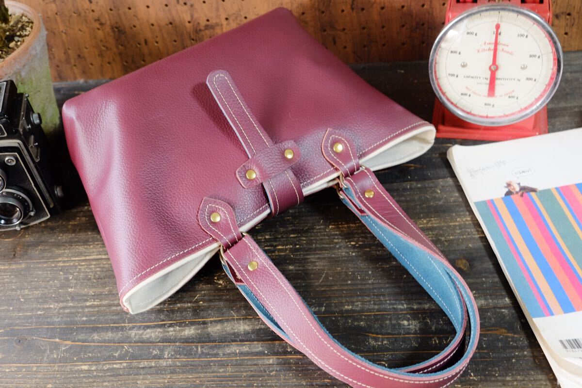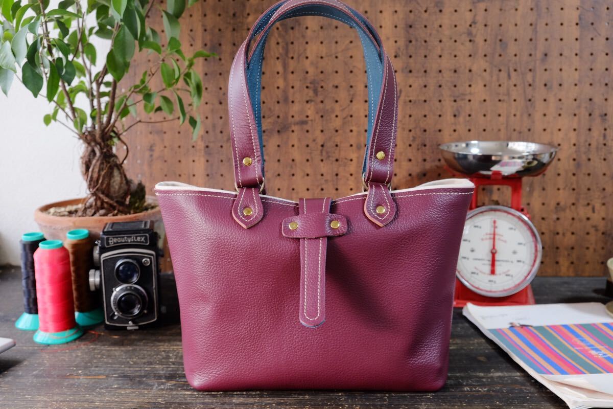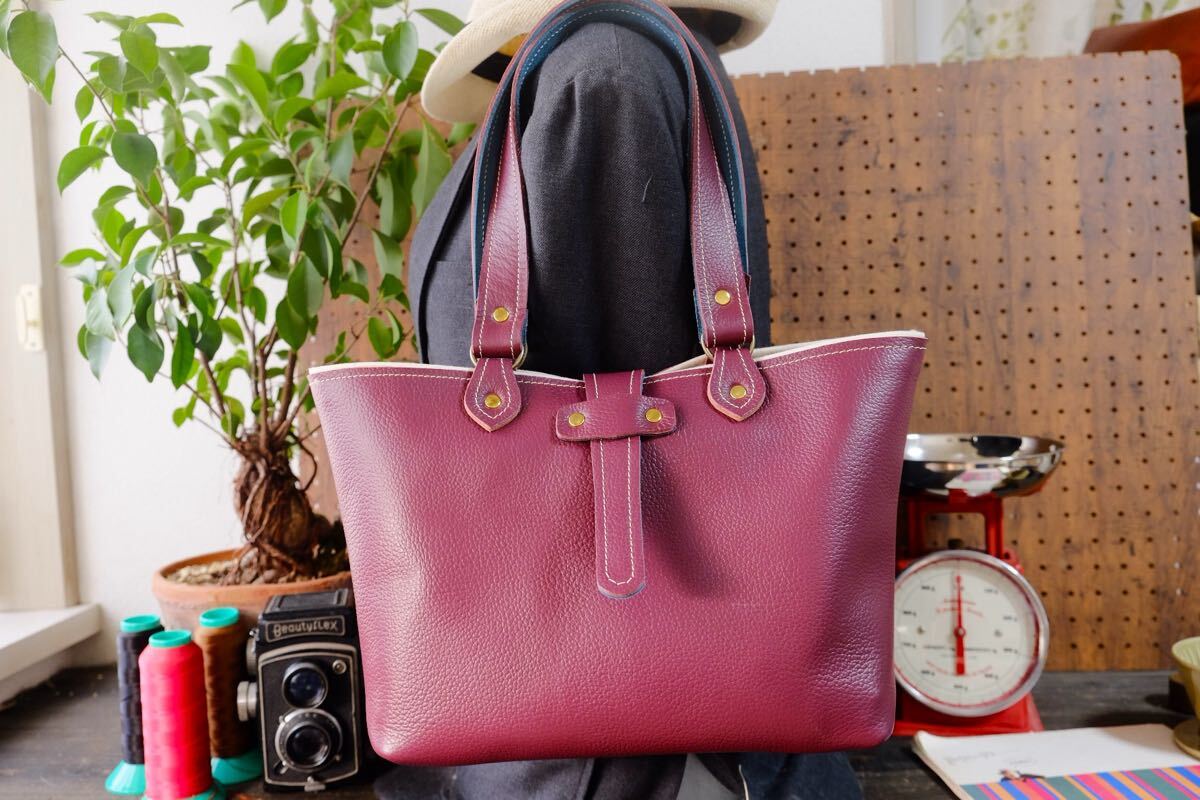 Product name: 美しい◆マゼンダワインレッドシュリンク牛革トートバッグ 作家手作り★日本製帆布鞄一点物ハンドメイドボルドーレザー