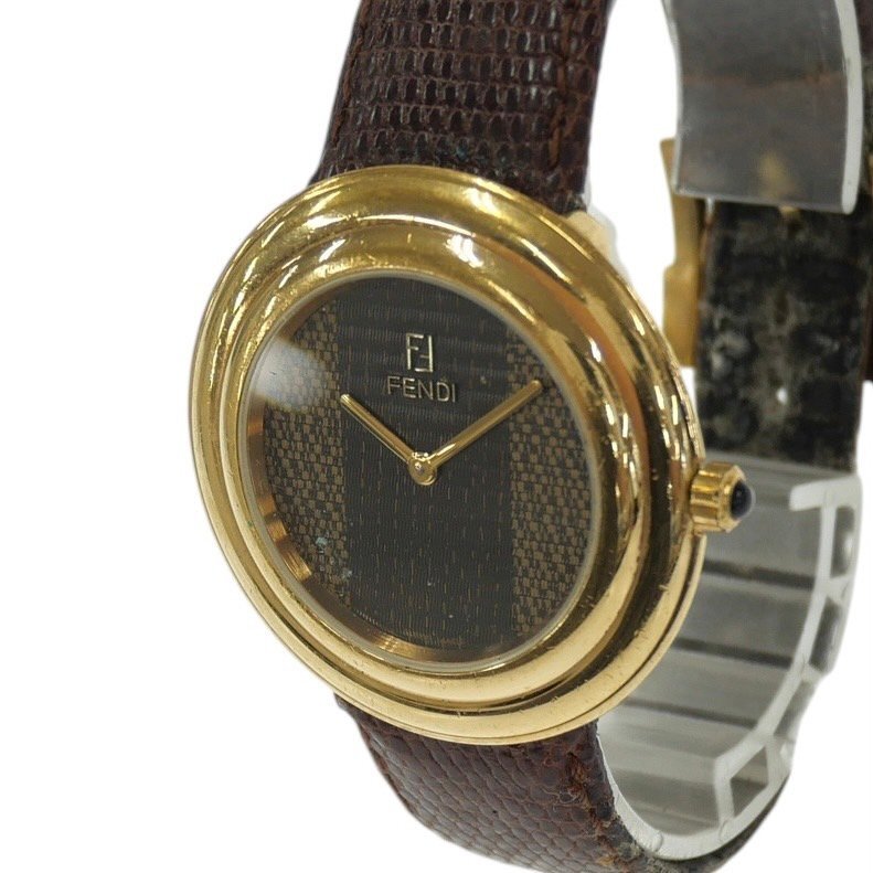1円スタート 稼働品 FENDI フェンディ メンズ 腕時計 310 009-239 クォーツ QZ ラウンドフェイス 2針 ゴールドカラー ペカン柄文字盤