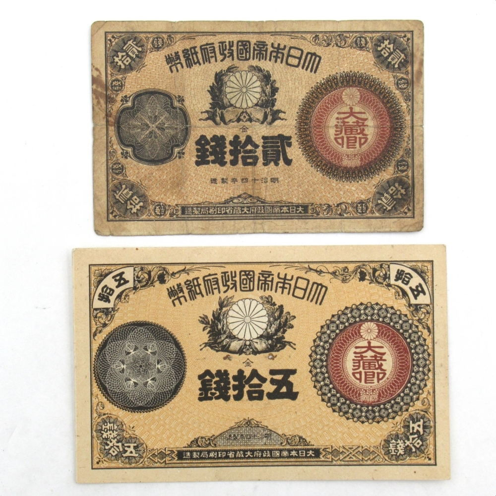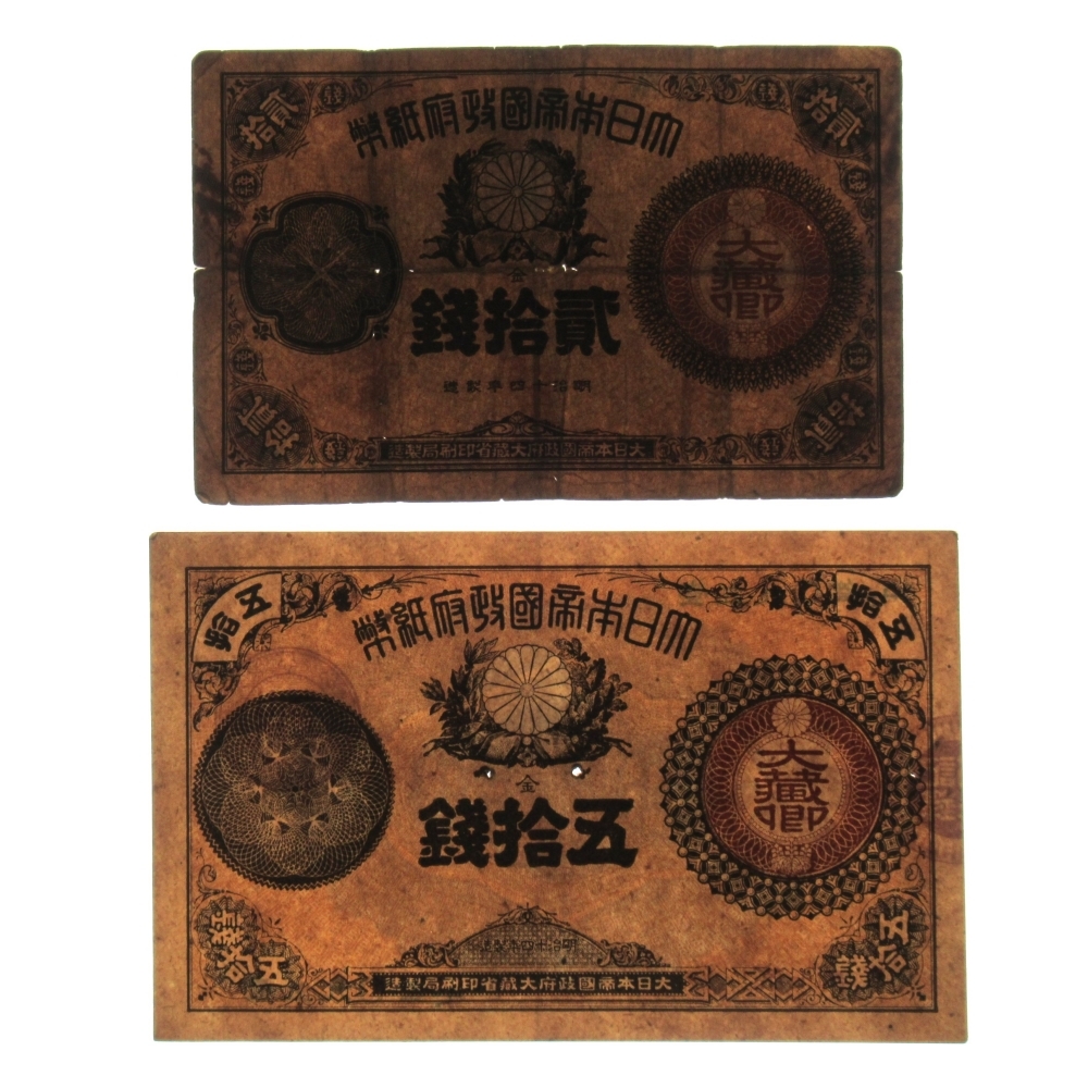 Product name: 1円〜 改造紙幣五拾銭 大蔵卿50銭 /改造紙幣貮拾銭 大蔵卿20銭 大日本帝国政府紙幣 計2点 古紙幣 古札 3971212