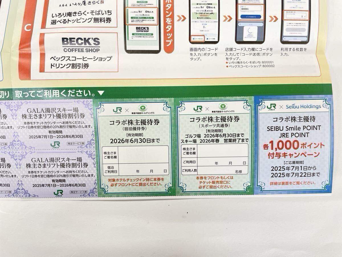 ・コラボ株主優待券に関しましては株主署名欄があり使用できるかは不明です