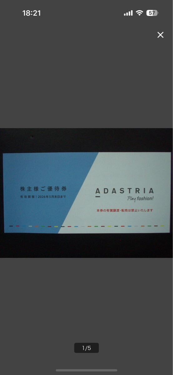 アダストリア 株主優待券 20000円分(1000円×20枚)