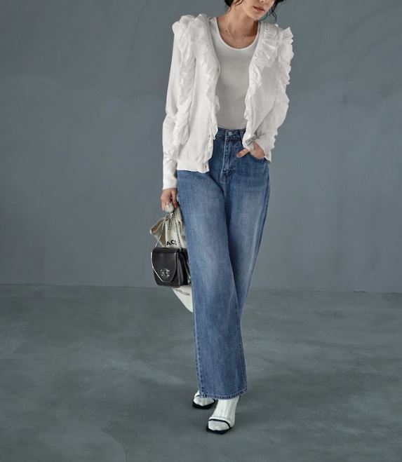 とくに春夏になると穿きたくなる、明るい色合いのデニムパンツ。今っぽいストレート型のワイドシルエットになっており、ピチピチせずにカッコいいフォルムを作ります。