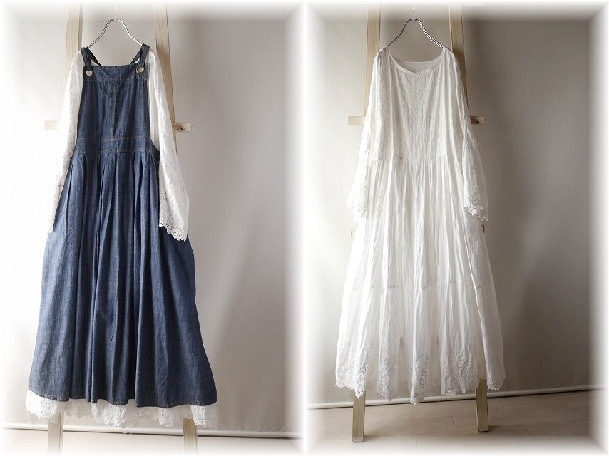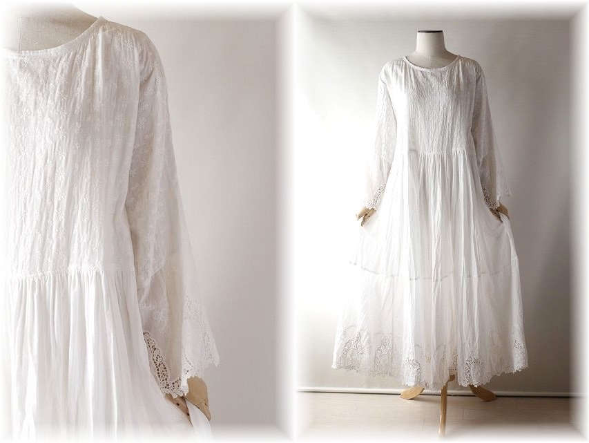 *Wガーゼフラワー刺繍レース&コットン刺繍レース/オフ ペチOP*ハンドメイド