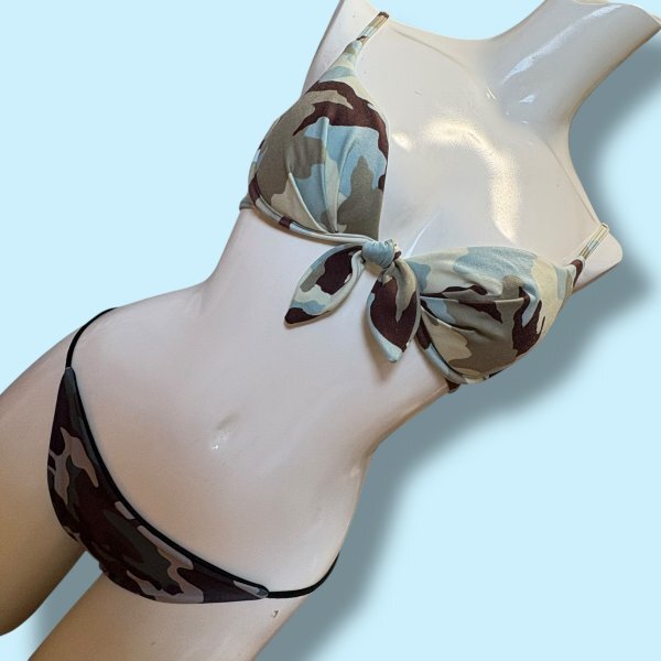 迷彩カラーの少しレトロっぽいビキニです 下のショーツは別ブランドです