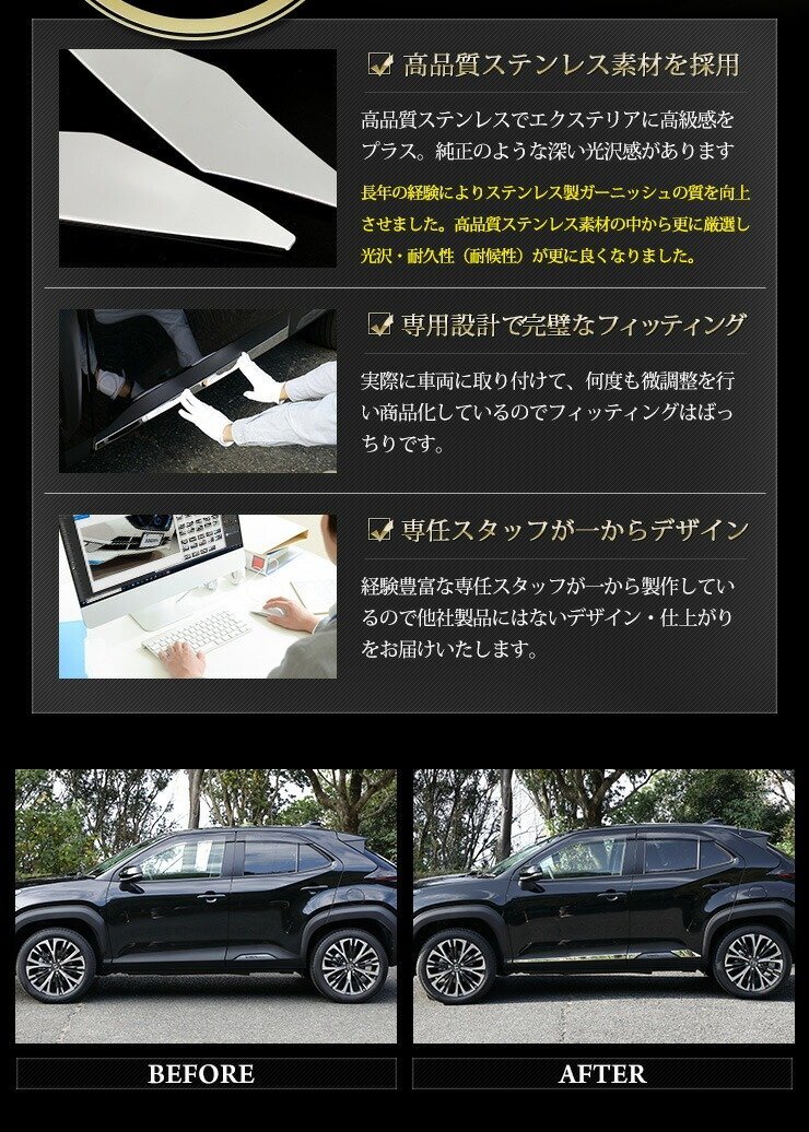 Product name: 【訳あり品】 ヤリスクロス専用 サイドガーニッシュ 8PCS メッキ カスタム 外装 パーツ ドレスアップ ドアパネル エアロ 送料無料!