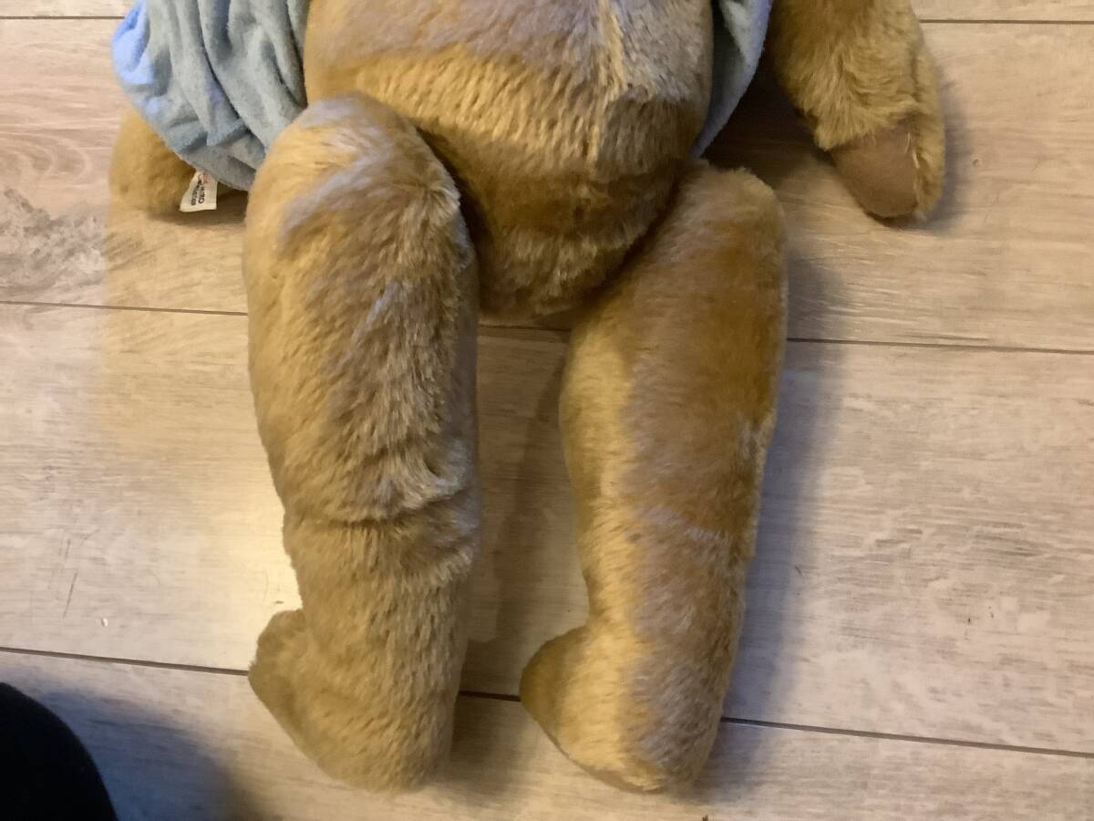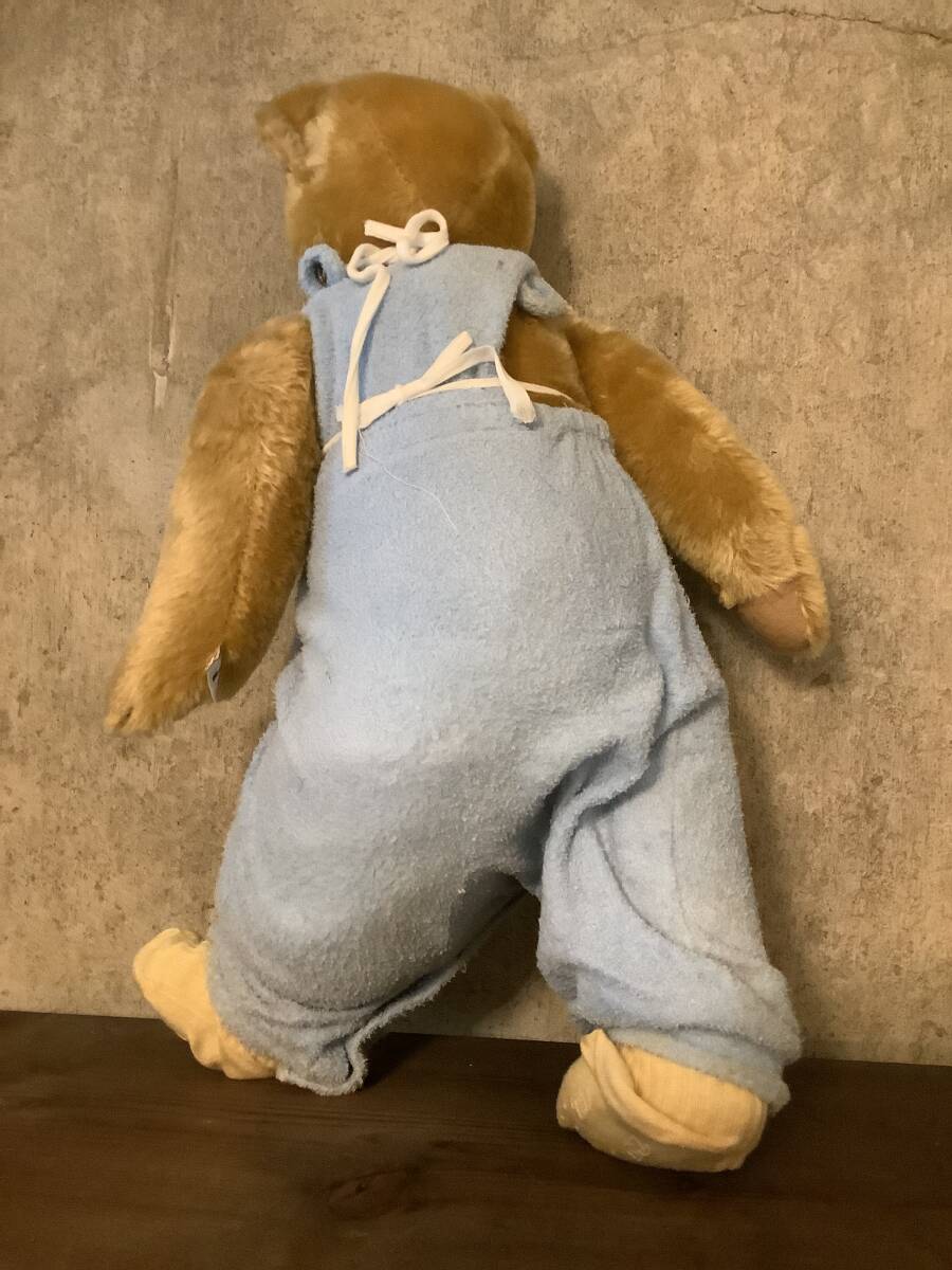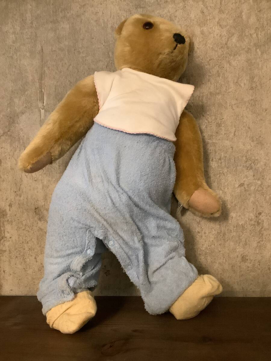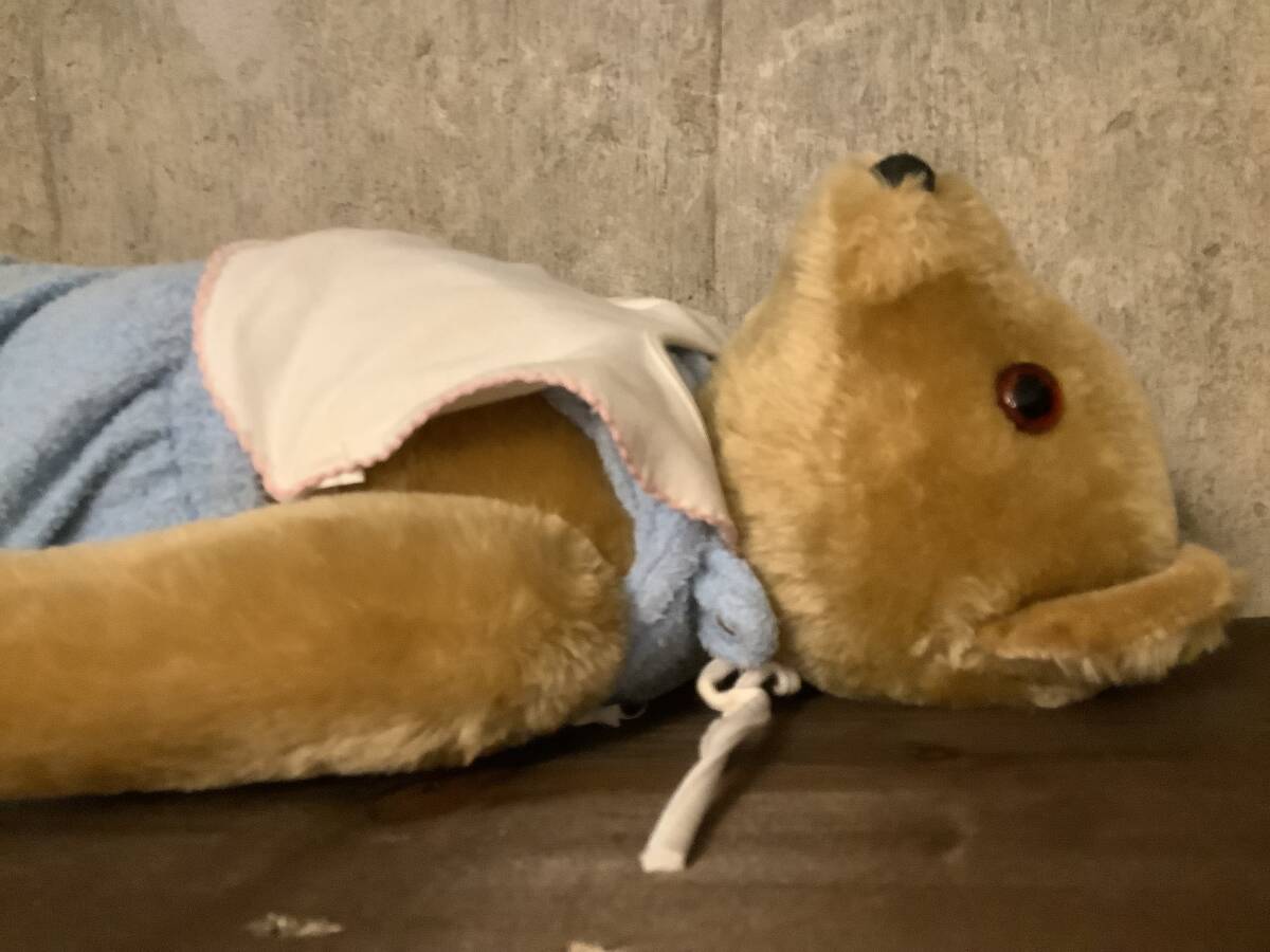 長期自宅保管していました。 足がまっすぐこちらを向かず、ユガミあり。 他も写真のようにややユガミあり。 服やエプロン、靴下はオリジナルのものではないようです。 紙おむつにはウサギプリントあり。オリジナルのものではにと思いますがご連絡が無ければ同梱します。 服には毛玉あり。 ややヨゴレあり。 高さ最大部52センチ程度です。