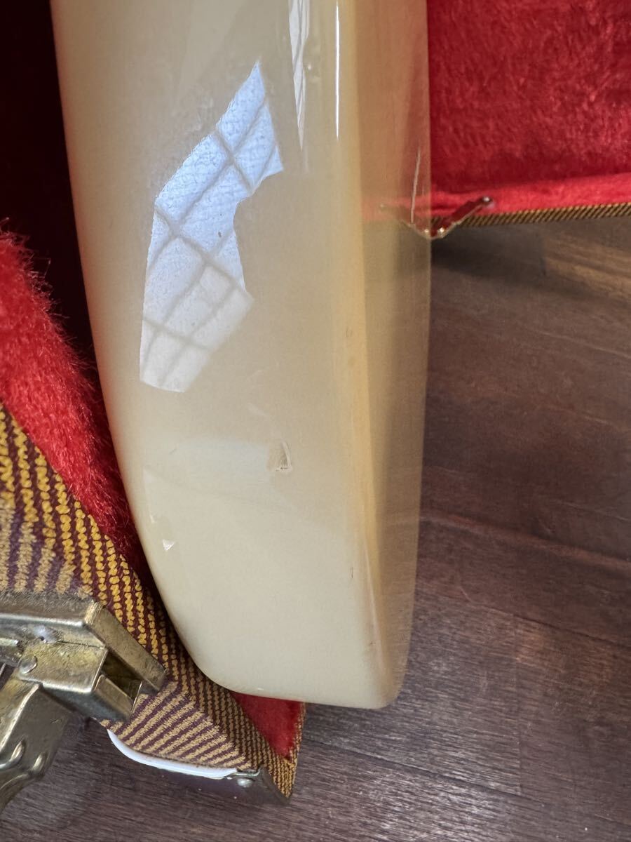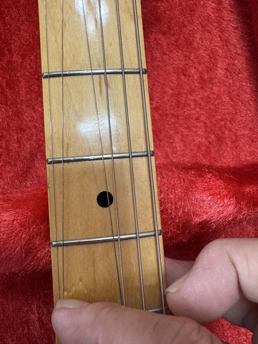 中古品ゆえボディの所々に打痕あります。フレットにも凹みありますが、ビビリ音、音詰まりは無さそうです。セレクタースイッチ、コントロールノブ僅かにガリ有ります。