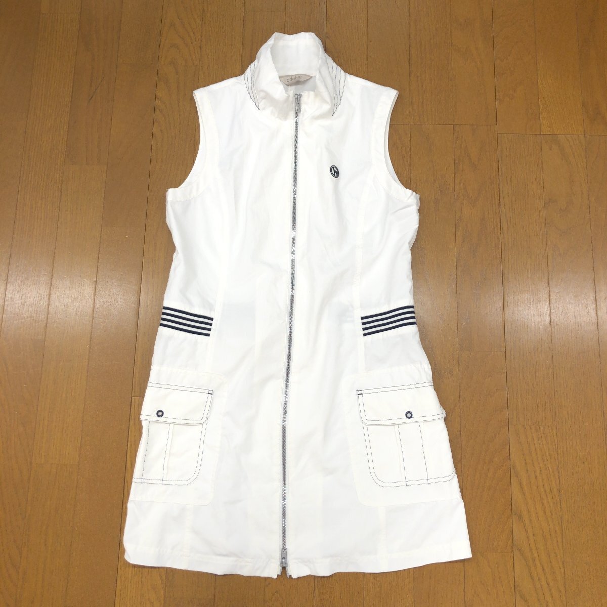adabat アダバット 吸水速乾 ドライ ジップアップ ノースリーブ ゴルフワンピース 40(L) 白 ホワイト ジャケット チュニック レディース