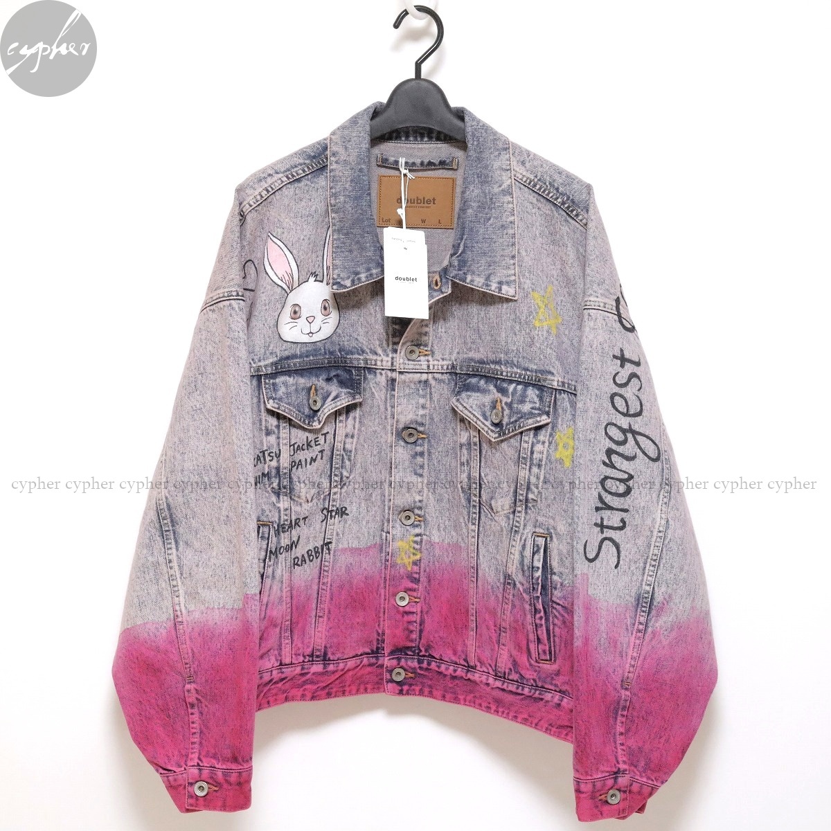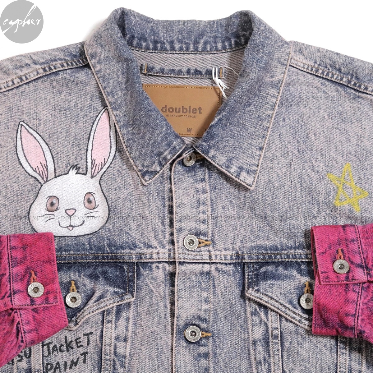 M 新品 25SS doublet ANIME HAND-PAINTING DENIM JACKET ダブレット アニメ ハンド ペインティング デニム ジャケット ペイント ウサギ
