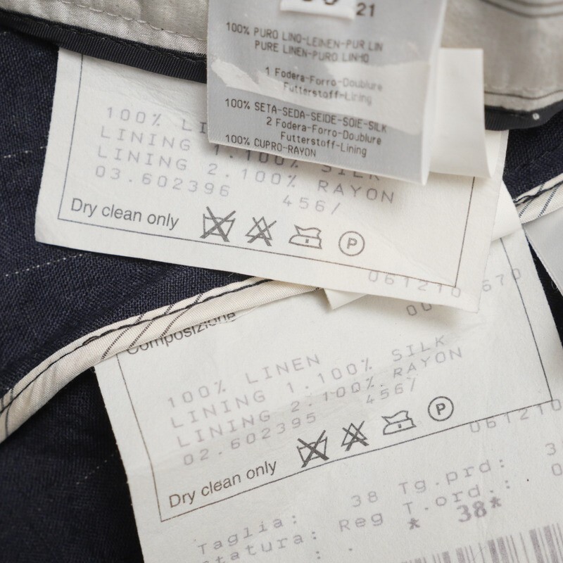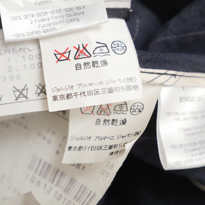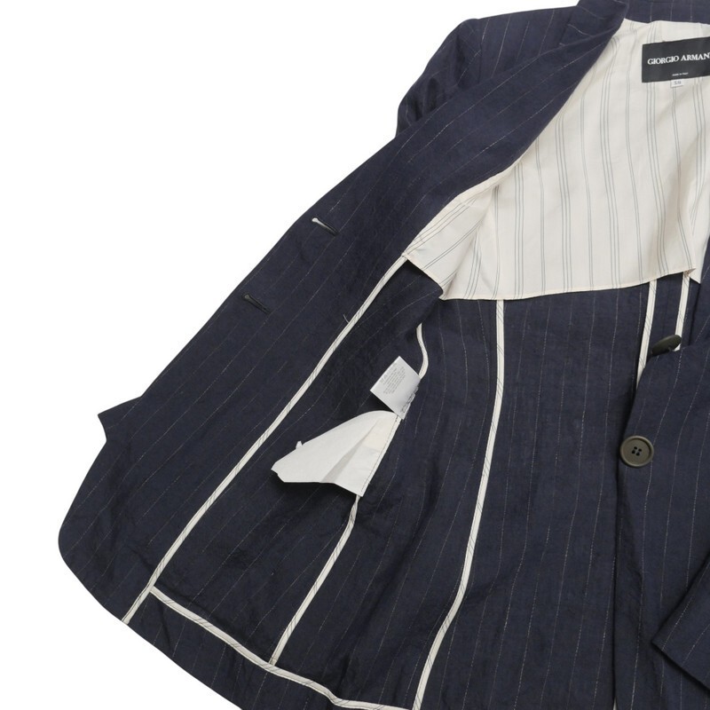 Product name: TJ3550★イタリア製 ジョルジオ アルマーニ リネン100% 裏:シルク100% ストライプ ジャケット ワイドパンツ セットアップスーツ 紺 38/36
