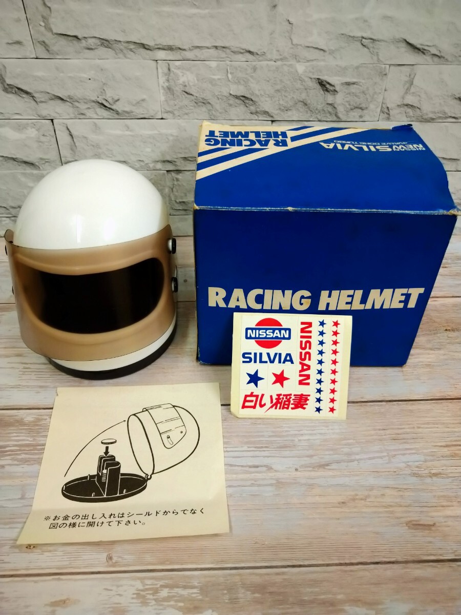 当時物 日産 シルビア レーシング ヘルメット 族ヘル コインケース 貯金箱 レトロ NISSAN SILVIA 白い稲妻 車内 装飾 ガレージ S12 旧車
