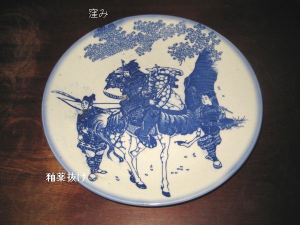 (珍品)明治印判手 戦国武将の図 9寸弱皿 一部窯傷  検索用:古伊万里 蕎麦猪口